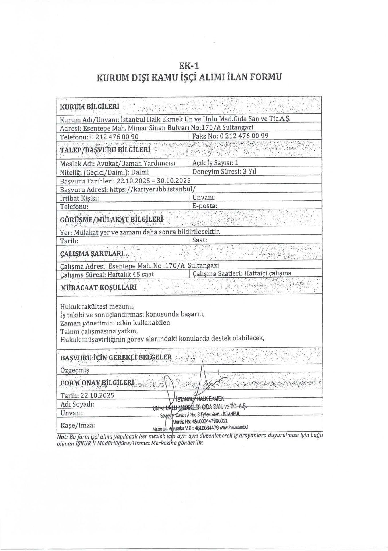 Ana sayfaDaimi İşçi İlanları İstanbul Halk Ekmek 1 İşçi Alacak İstanbul Halk Ekmek 1 İşçi Alacak. Son başvuru tarihi 30 Ekim 2025 Kaynak : İşkur İlan Giriş : 22 Ekim 2025 22:12, Son Güncelleme : 23 Ekim 2025 00:43 Yazdır Yorumlar (0) Abone Ol