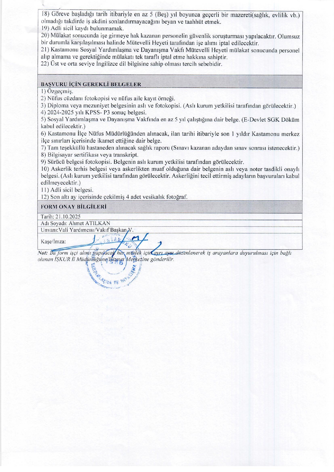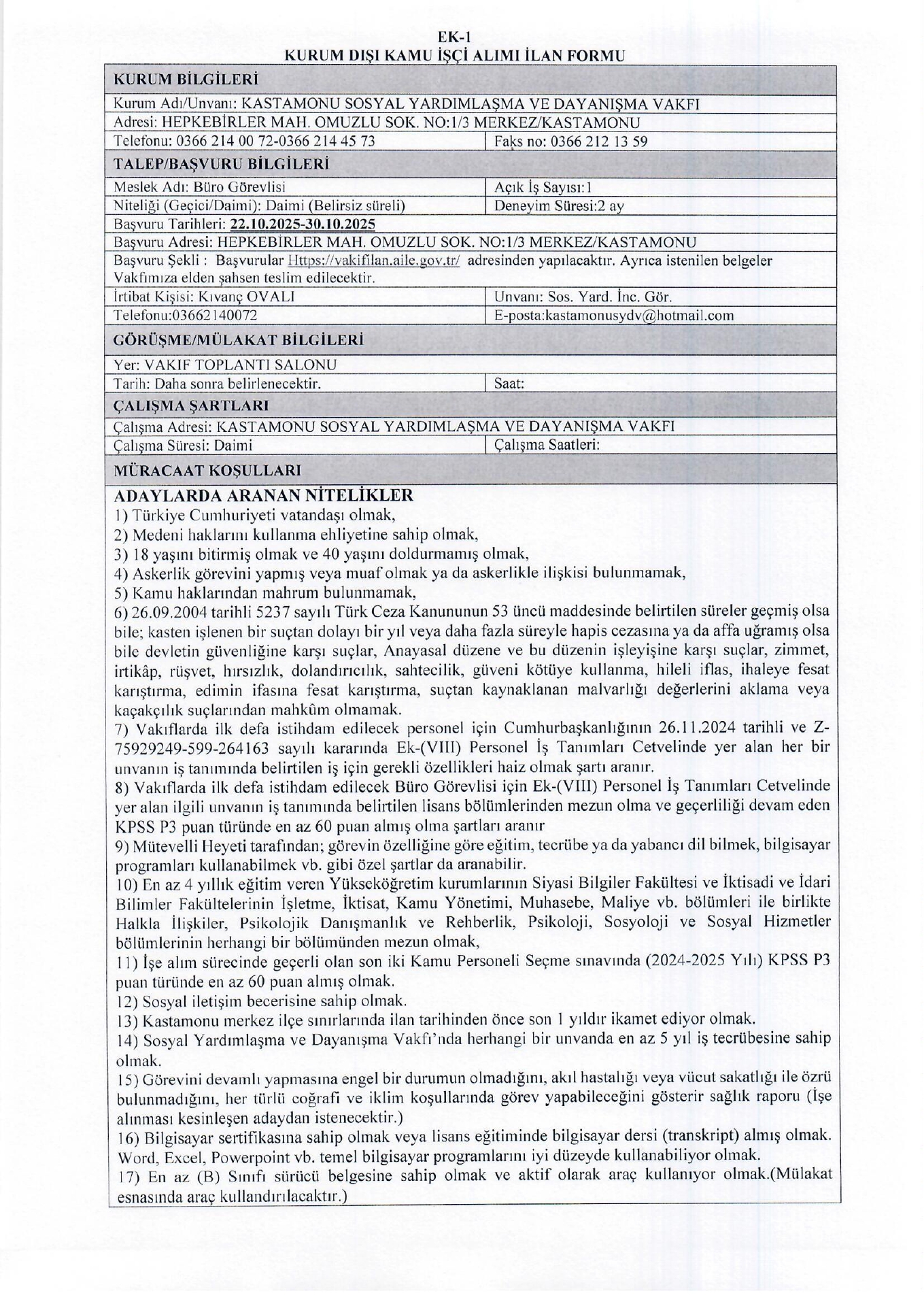 Ana sayfaDaimi İşçi İlanlarıAna sayfaSYDV İlanları Kastamonu SYDV 1 İşçi Alacak Kastamonu SYDV 1 İşçi Alacak. Son başvuru tarihi 30 Ekim 2025 Kaynak : İşkur İlan Giriş : 22 Ekim 2025 22:15, Son Güncelleme : 23 Ekim 2025 00:42 Yazdır Yorumlar (0) Abone Ol