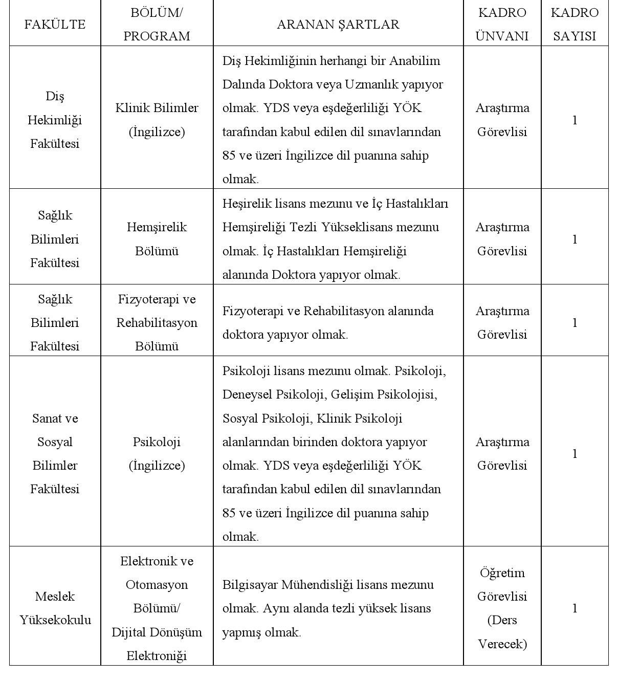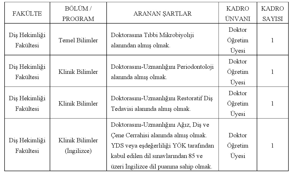 ÖĞRETİM ÜYESİ ALIM İLANI