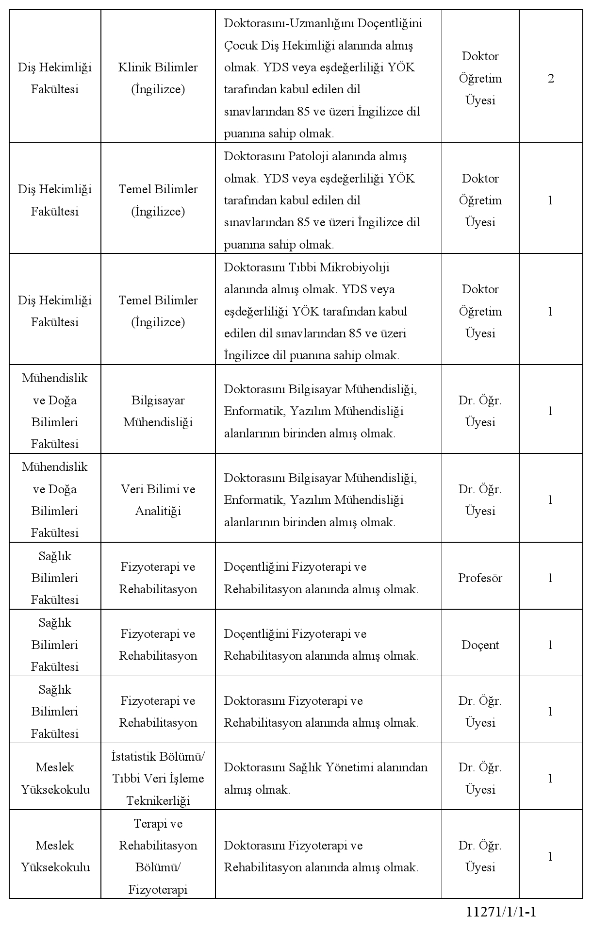 Üniversitemizin çeşitli bölüm ve programlarında görev yapmak üzere 2547 sayılı Yükseköğretim Kanunu, Öğretim Üyeliğine Yükseltilme ve Atanma Yönetmeliği, İstanbul Galata Üniversitesi Akademik Atama ve Yükseltme Yönergesi (https://www.galata.edu.tr/mevzuat) ile Vakıf Yükseköğretim Kurumları Yönetmeliği'nin ilgili maddeleri uyarınca, aşağıda nitelikleri belirtilen kadrolara öğretim üyeleri alınacaktır.