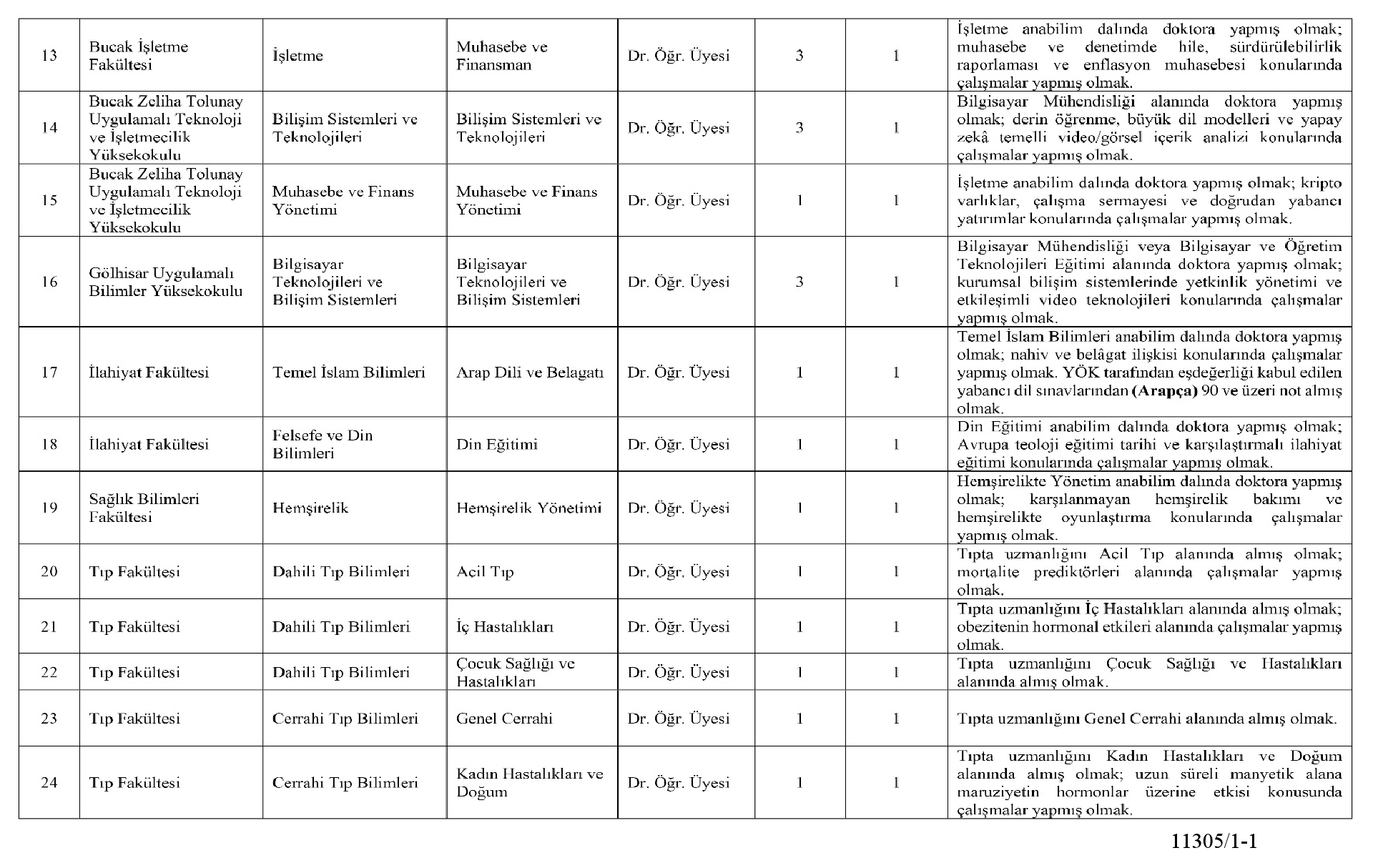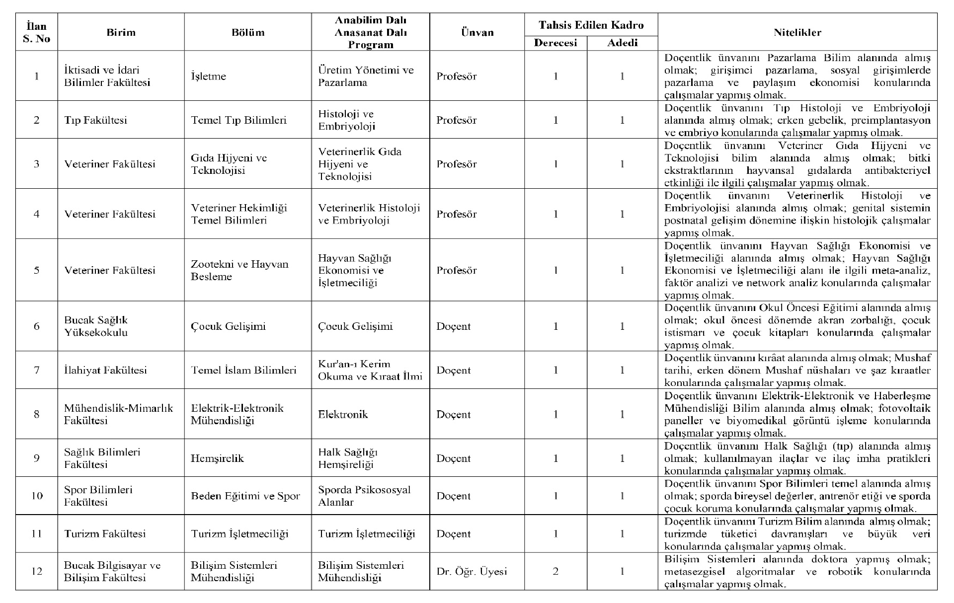 11. Profesör kadrosundakiler doçent kadrosuna, doçent unvanını alanlar ise doktor Öğretim üyesi kadrosuna başvuramazlar.