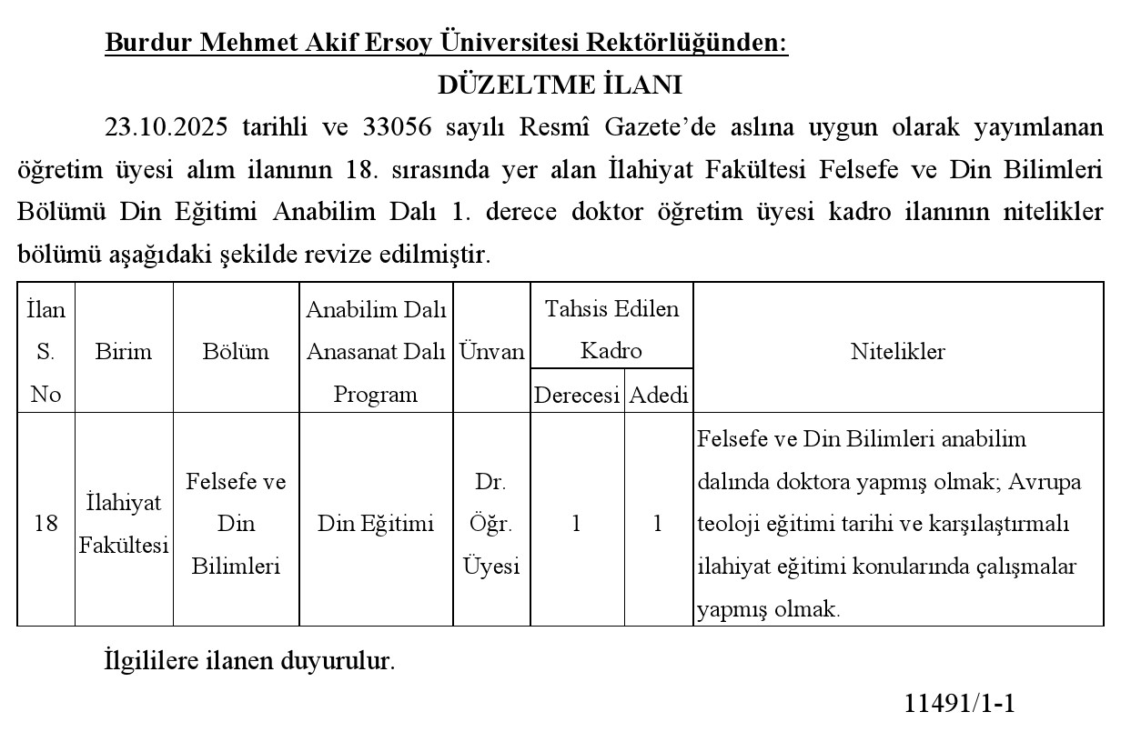 Burdur Mehmet Akif Ersoy Üniversitesi Öğretim Üyesi Alım İlanı. Son başvuru tarihi 6 Kasım 2025