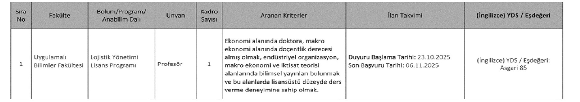 PROFESÖR KADRO BAŞVURULARI İÇİN;