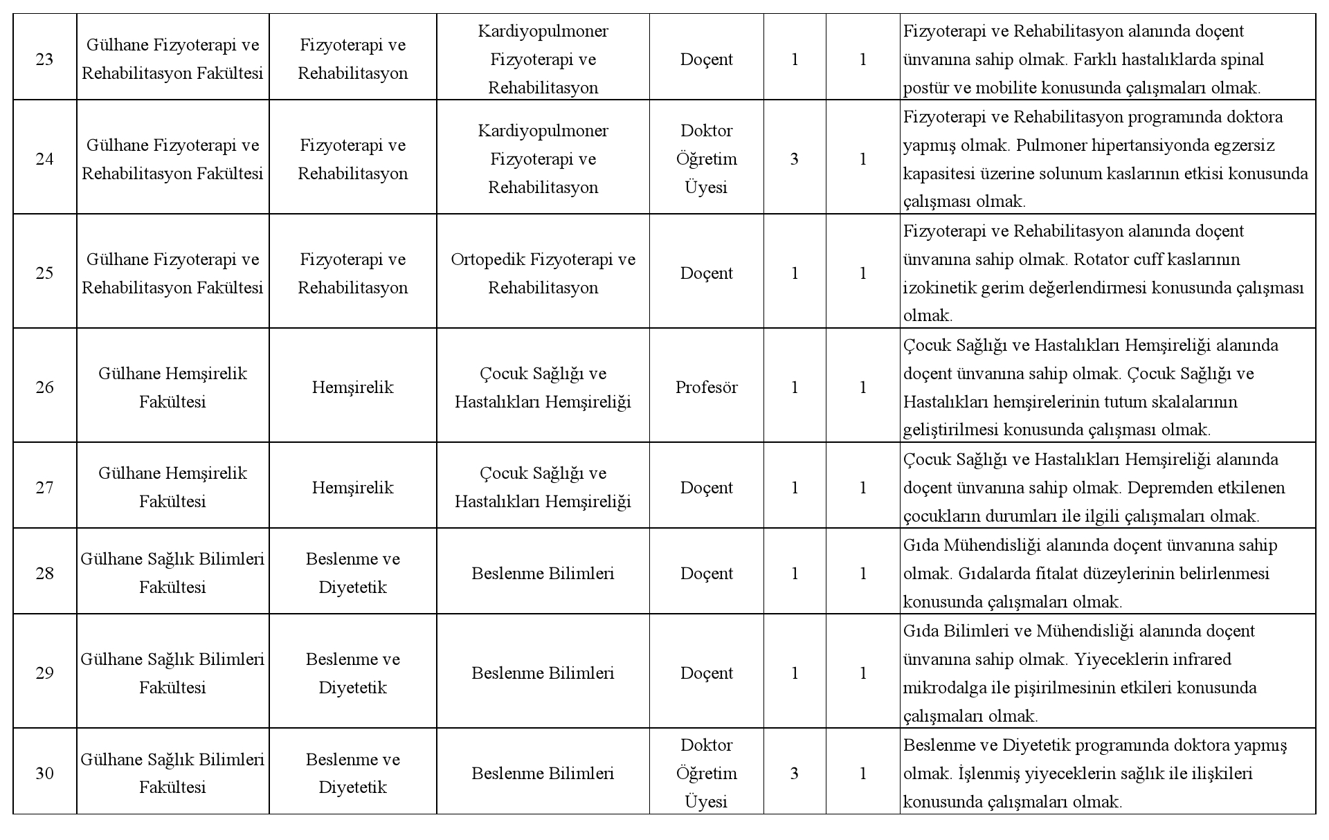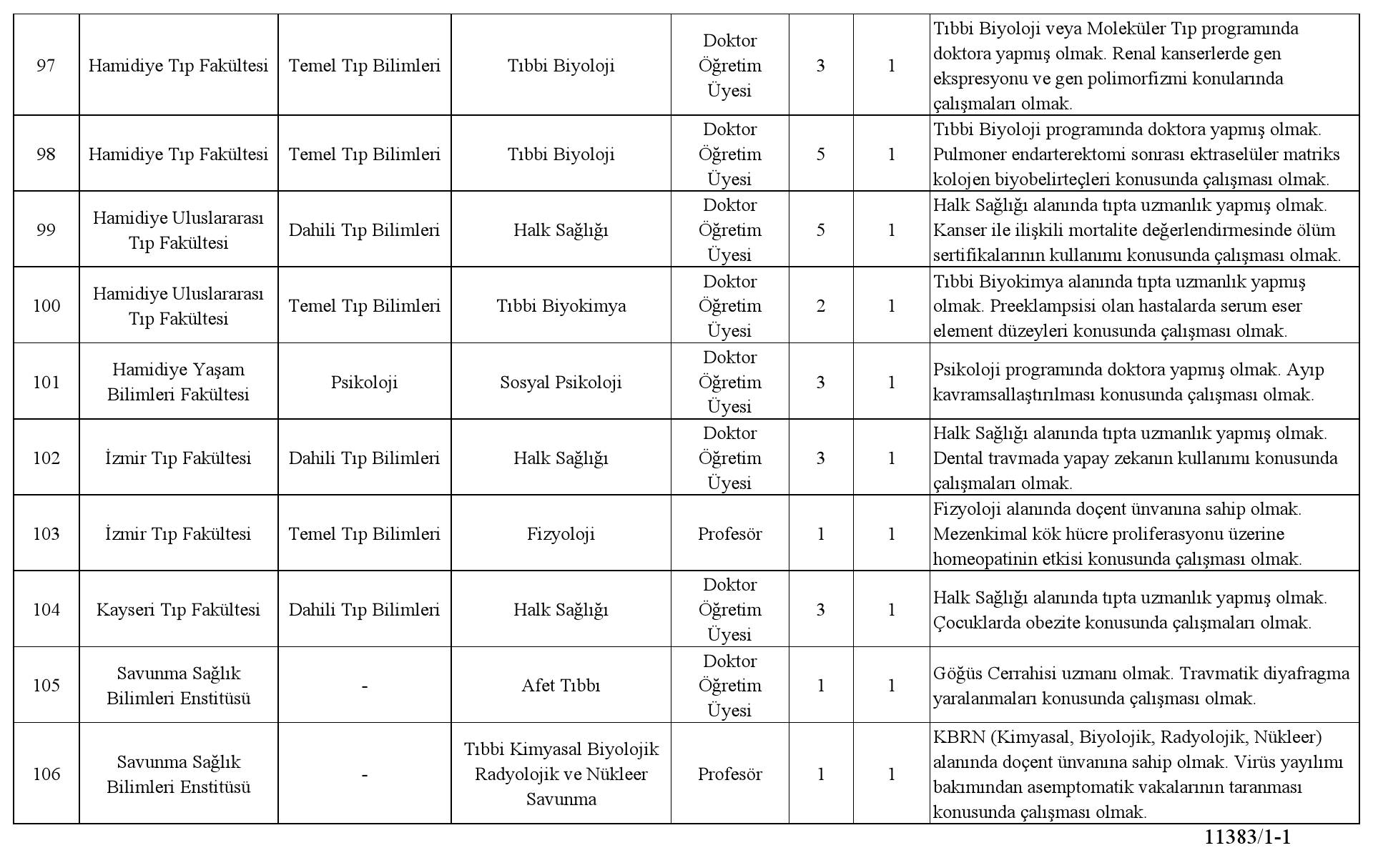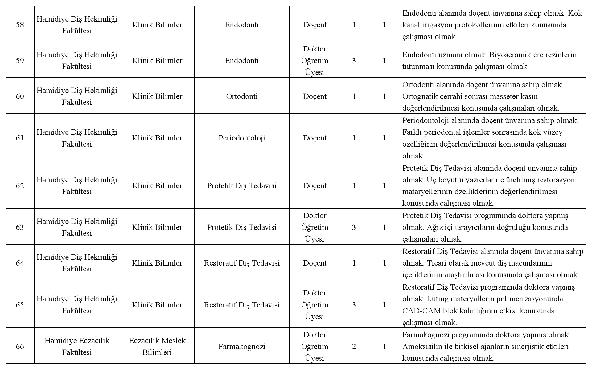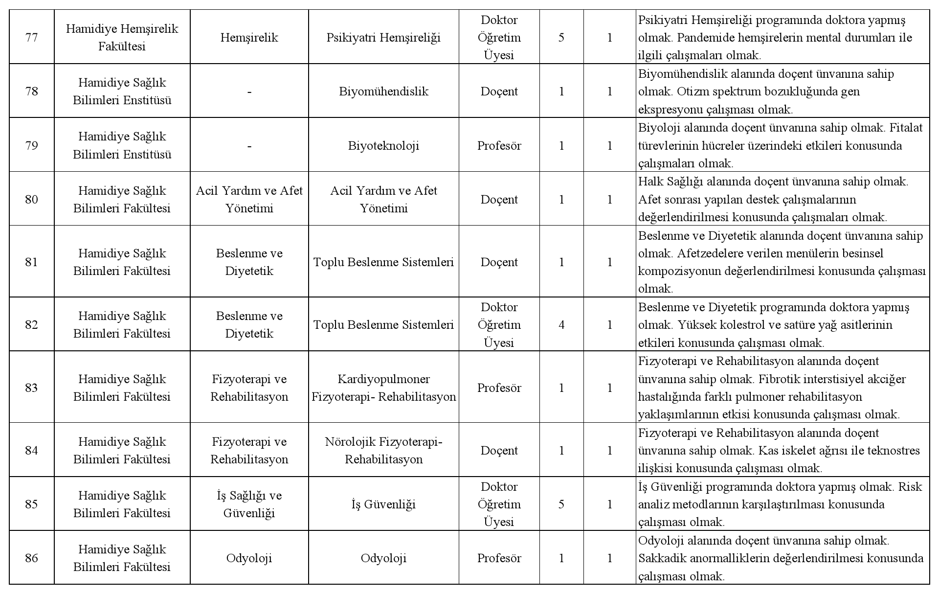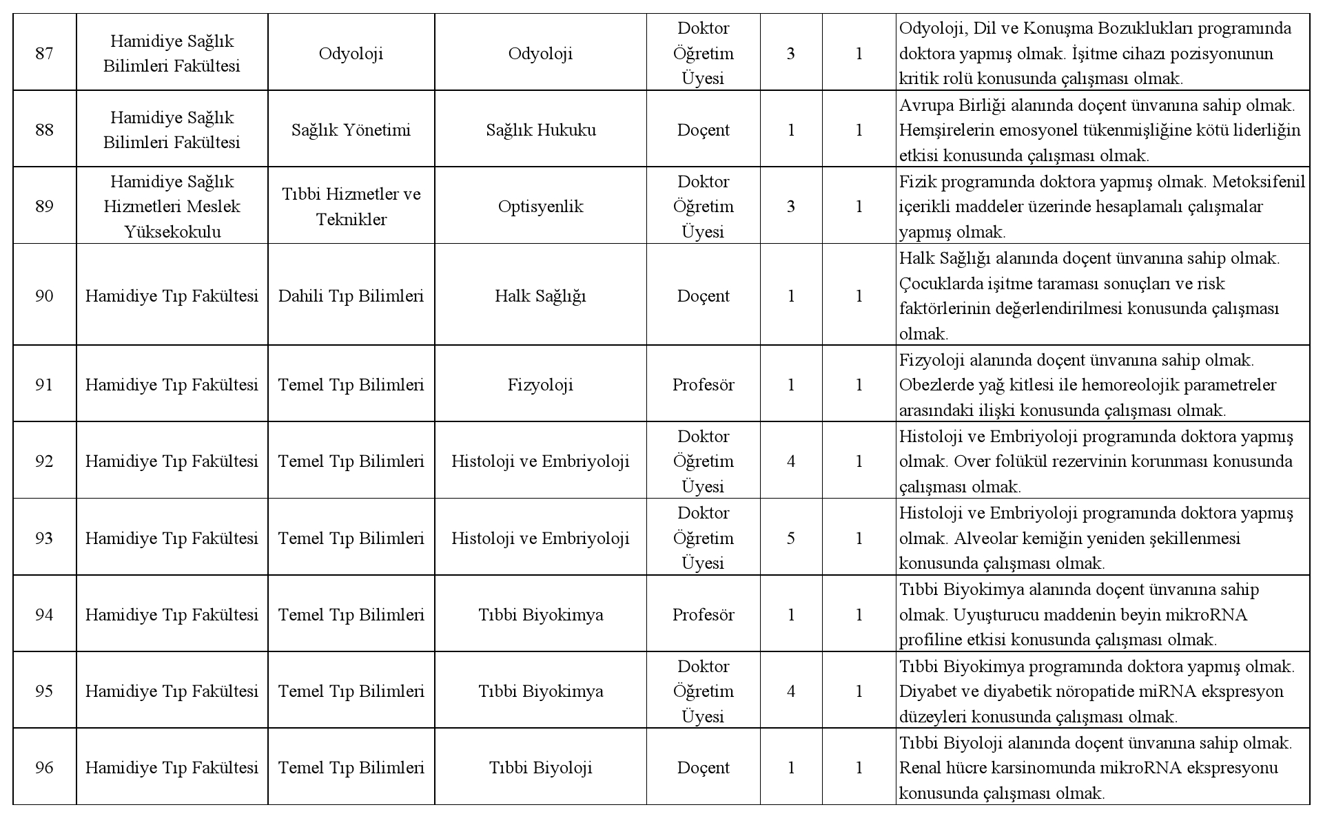 Üniversitemizin aşağıda belirtilen birimlerine, 02.11.2018 tarih ve 30583 sayılı Resmi Gazete'de yayımlanan Devlet Yükseköğretim Kurumlarında Öğretim Elemanı Norm Kadrolarının Belirlenmesine ve Kullanılmasına İlişkin Yönetmelik hükümleri, 2547 sayılı Yükseköğretim Kanunu, Öğretim Üyeliğine Yükseltilme ve Atanma Yönetmeliği, 657 sayılı Devlet Memurları Kanunu'nun 48. maddesi hükümleri ve Sağlık Bilimleri Üniversitesi Öğretim Üyeliğine Yükseltilme ve Atanma Yönergesi hükümleri uyarınca Öğretim Üyesi alınacaktır. İlan edilen kadrolara uygun olmadığı anlaşılan başvurular geçersiz sayılacaktır.