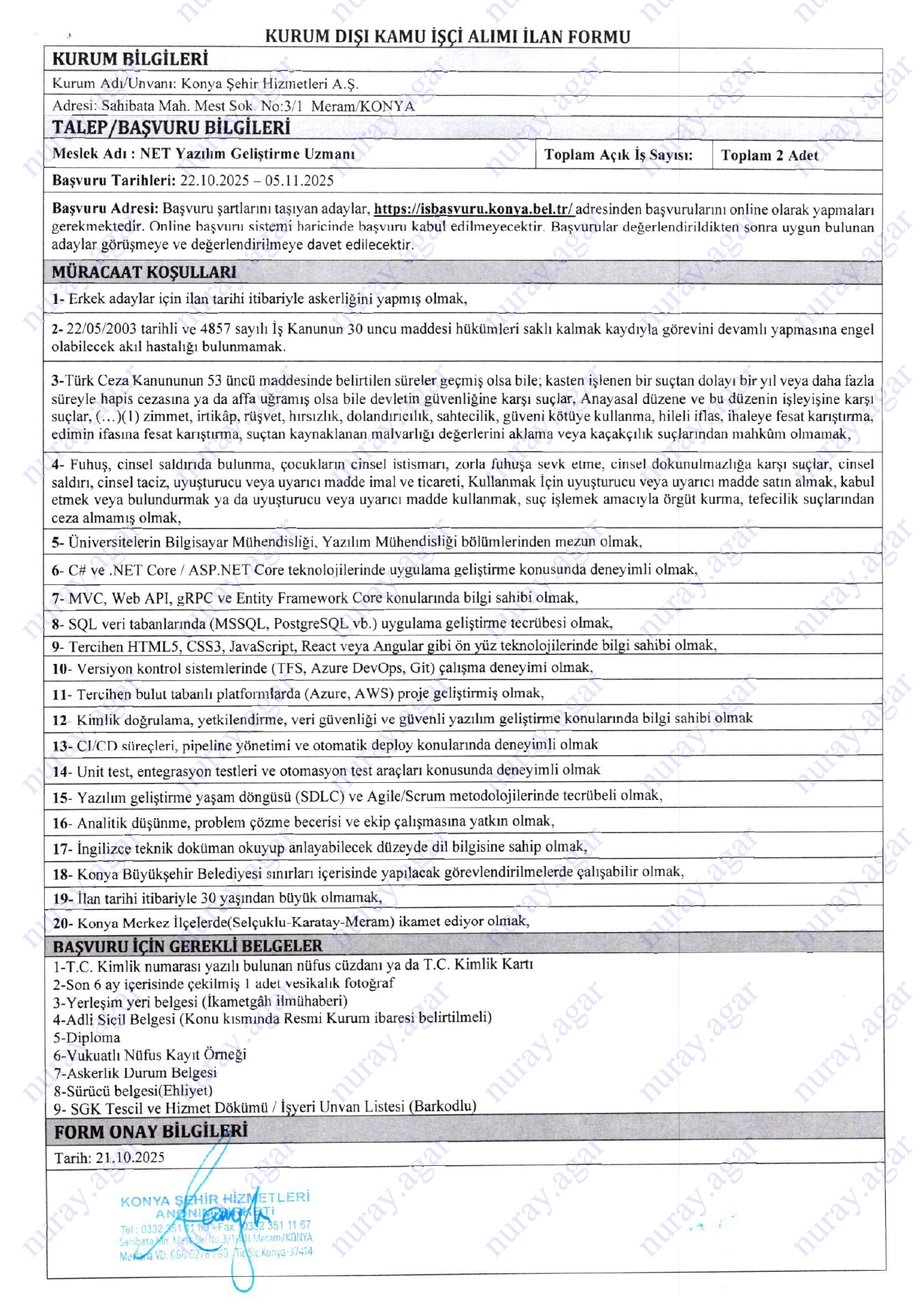 Ana sayfaDaimi İşçi İlanları Konya Şehir Hizmetleri 4 İşçi Alacak Konya Şehir Hizmetleri 4 İşçi Alacak. Son başvuru tarihi 5 Kasım 2025 Kaynak : İşkur İlan Giriş : 23 Ekim 2025 23:13, Son Güncelleme : 23 Ekim 2025 23:36 Yazdır Yorumlar (0) Abone Ol