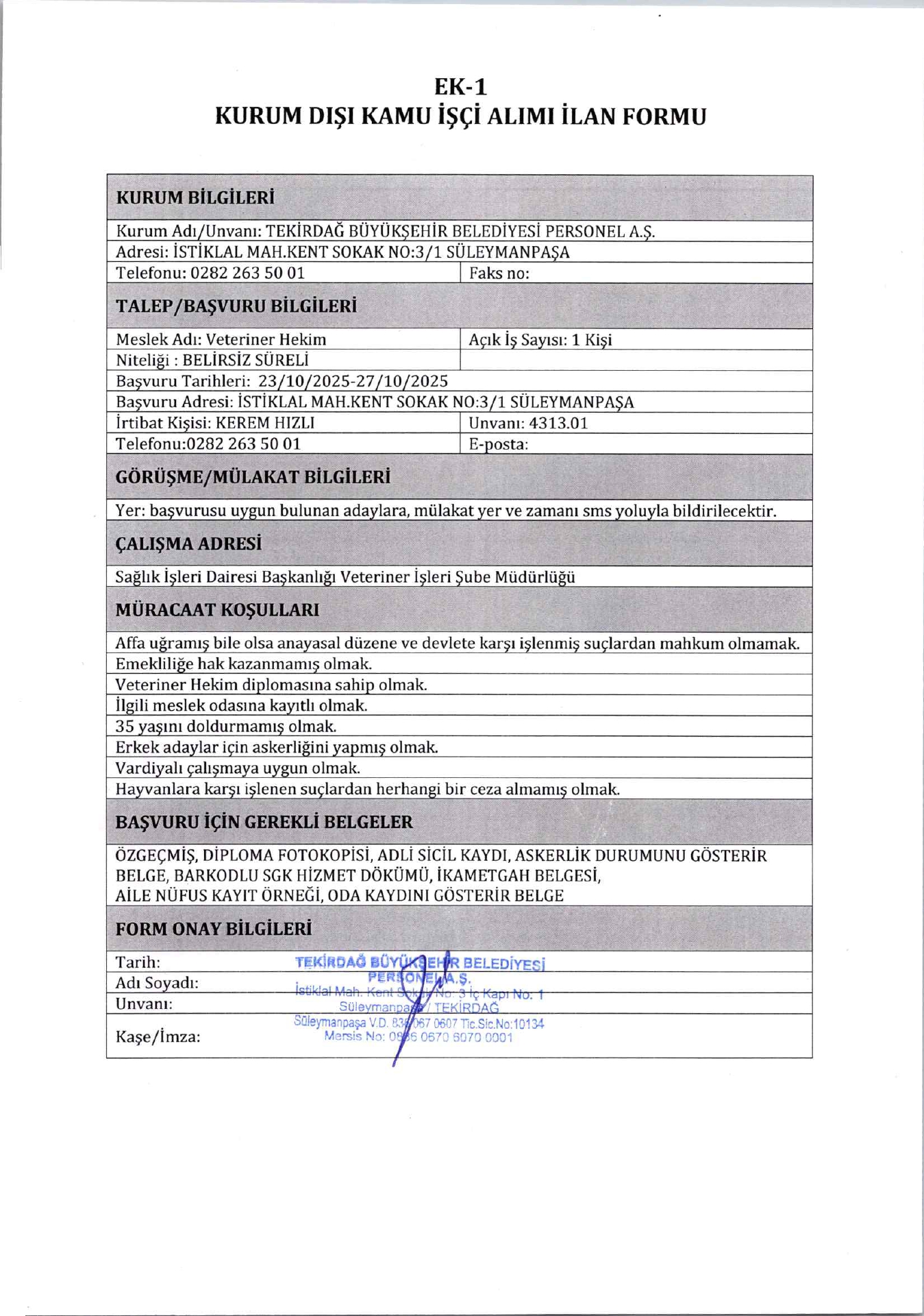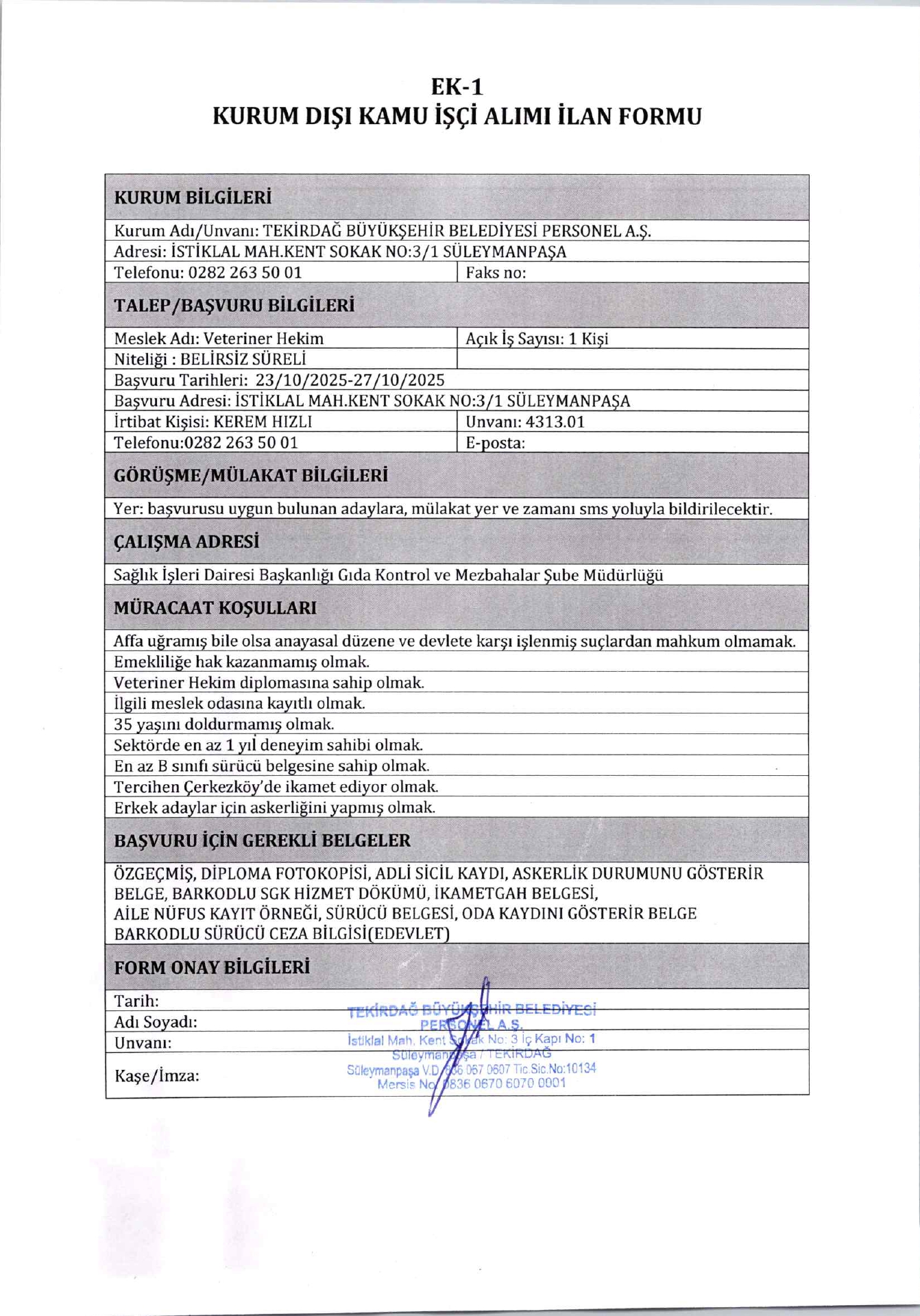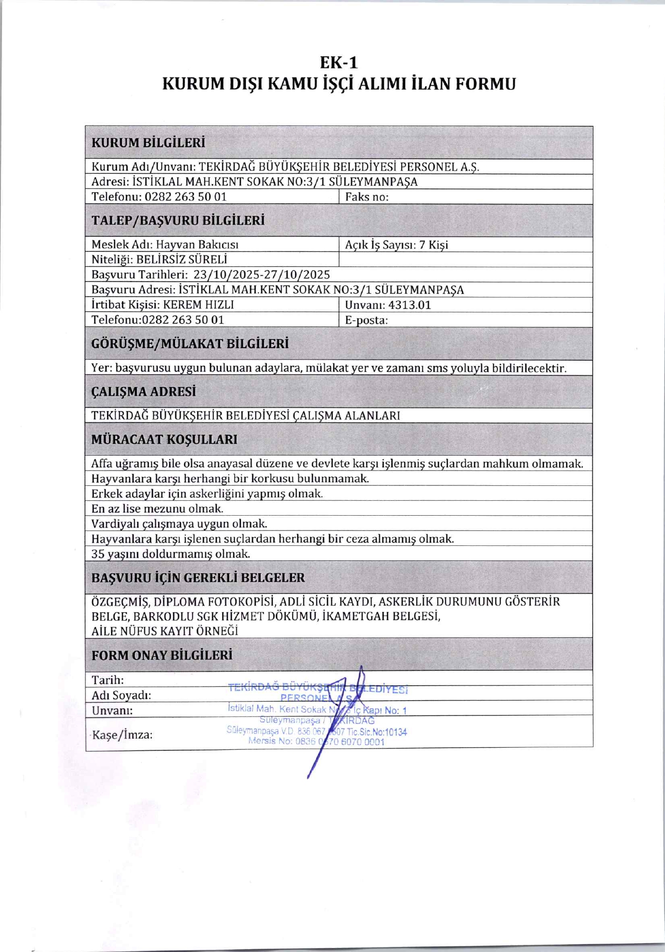 Ana sayfaDaimi İşçi İlanları Tekirdağ Büyükşehir Belediyesi 15 İşçi Alacak Tekirdağ Büyükşehir Belediyesi 15 İşçi Alacak. Son başvuru tarihi 27 Ekim 2025 Kaynak : İşkur İlan Giriş : 23 Ekim 2025 23:25, Son Güncelleme : 23 Ekim 2025 23:32 Yazdır Yorumlar (0) Abone Ol