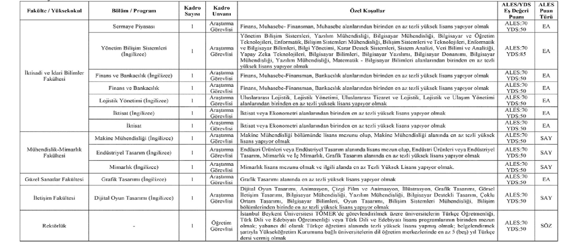 İstanbul Beykent Üniversitesi Rektörlüğünden: