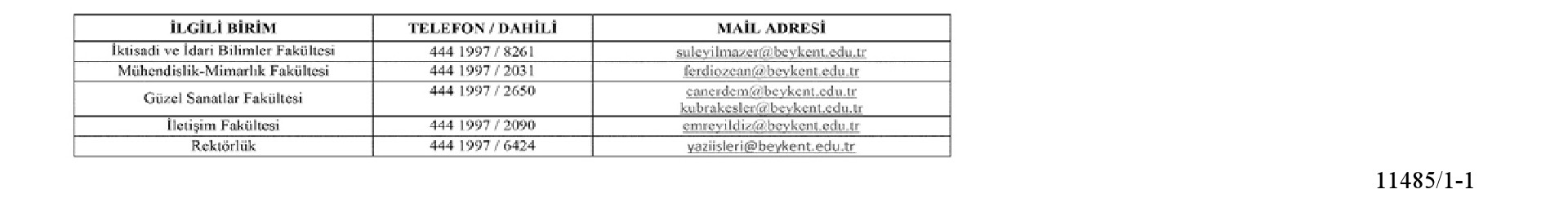 Not: 6698 sayılı Kişisel Verilerin Korunması Mevzuatı uyarınca hazırlanan Aydınlatma Metnine https://www.bevkent.edu.tr/beykent hakkında kişişel-verıi korunmasi/kvk-mevzuat-uyarıiK a akademık-pcrsoncl-adayi-aydinlatma-mctnı linkinden erişim sağlanabilmektedir.