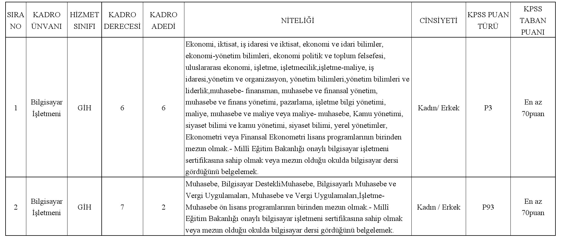 İstanbul ili İstanbul Su ve Kanalizasyon İdaresi Genel Müdürlüğü bünyesinde 657 sayılı Devlet Memurları Kanununa tabi olarak istihdam edilmek üzere; Mahalli İdarelere İlk Defa Atanacaklara Dair Sınav ve Atama Yönetmeliği hükümlerine göre aşağıda unvanı, sınıfı, derecesi, adedi, nitelikleri, KPSS puan türü, KPSS taban puanı ve diğer şartları taşımak kaydıyla, belirtilen boş kadrolara açıktan atama yoluyla memur alınacaktır.