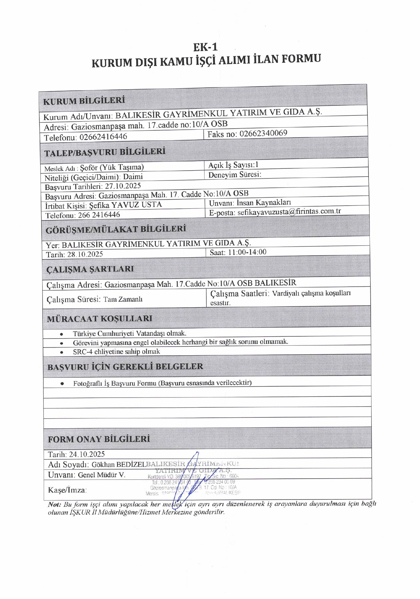 Balıkesir Gayrimenkul Yatırım 1 İşçi Alacak. Son başvuru tarihi 27 Ekim 2025