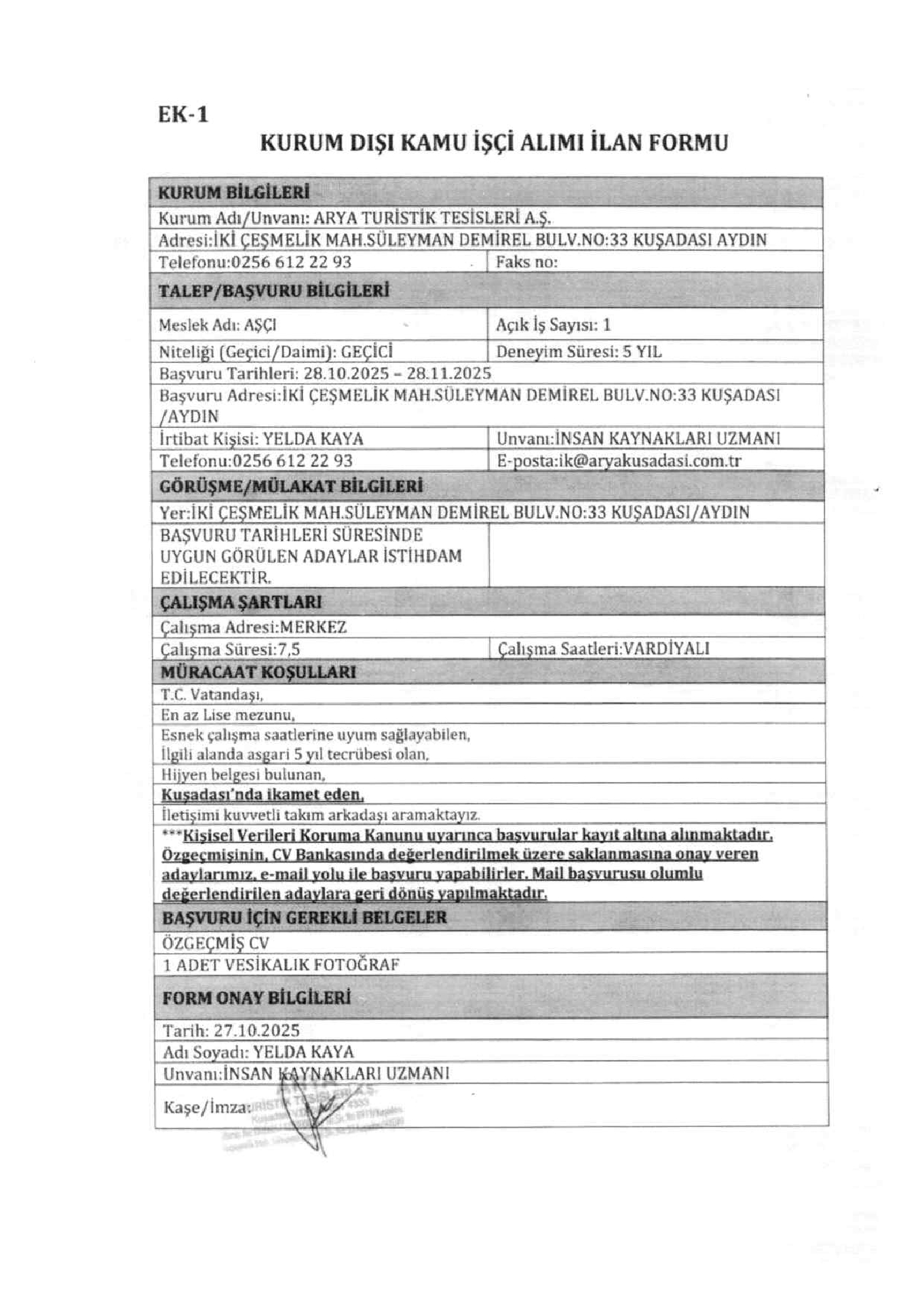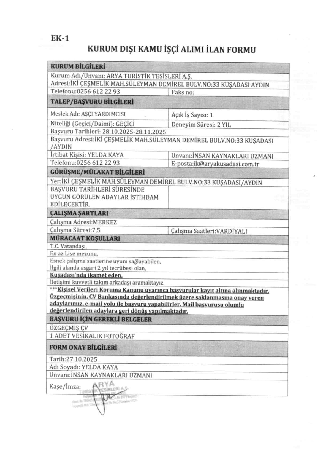 İlan Giriş : 27 Ekim 2025 23:03, Son Güncelleme : 27 Ekim 2025 23:46