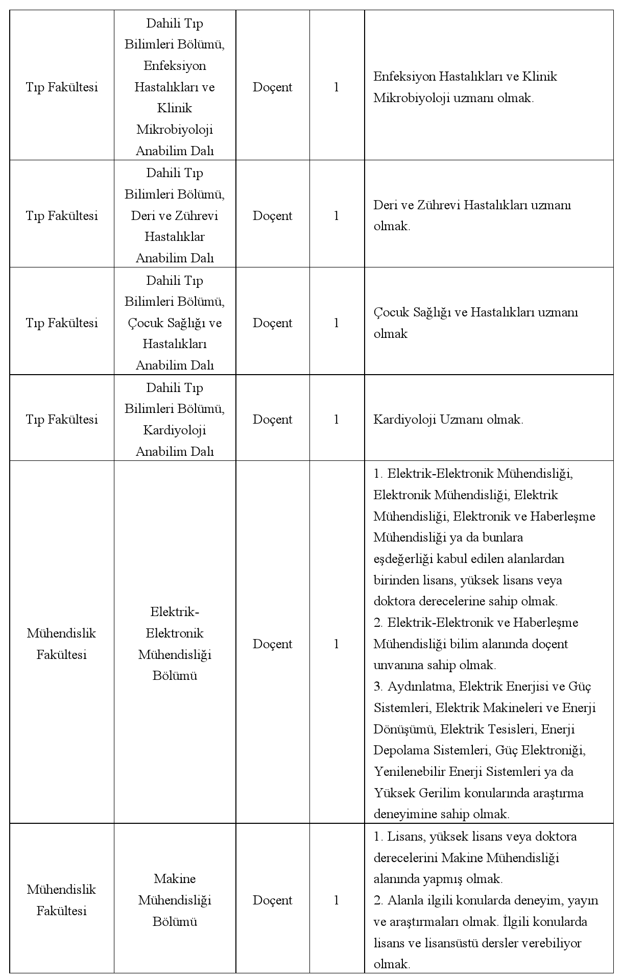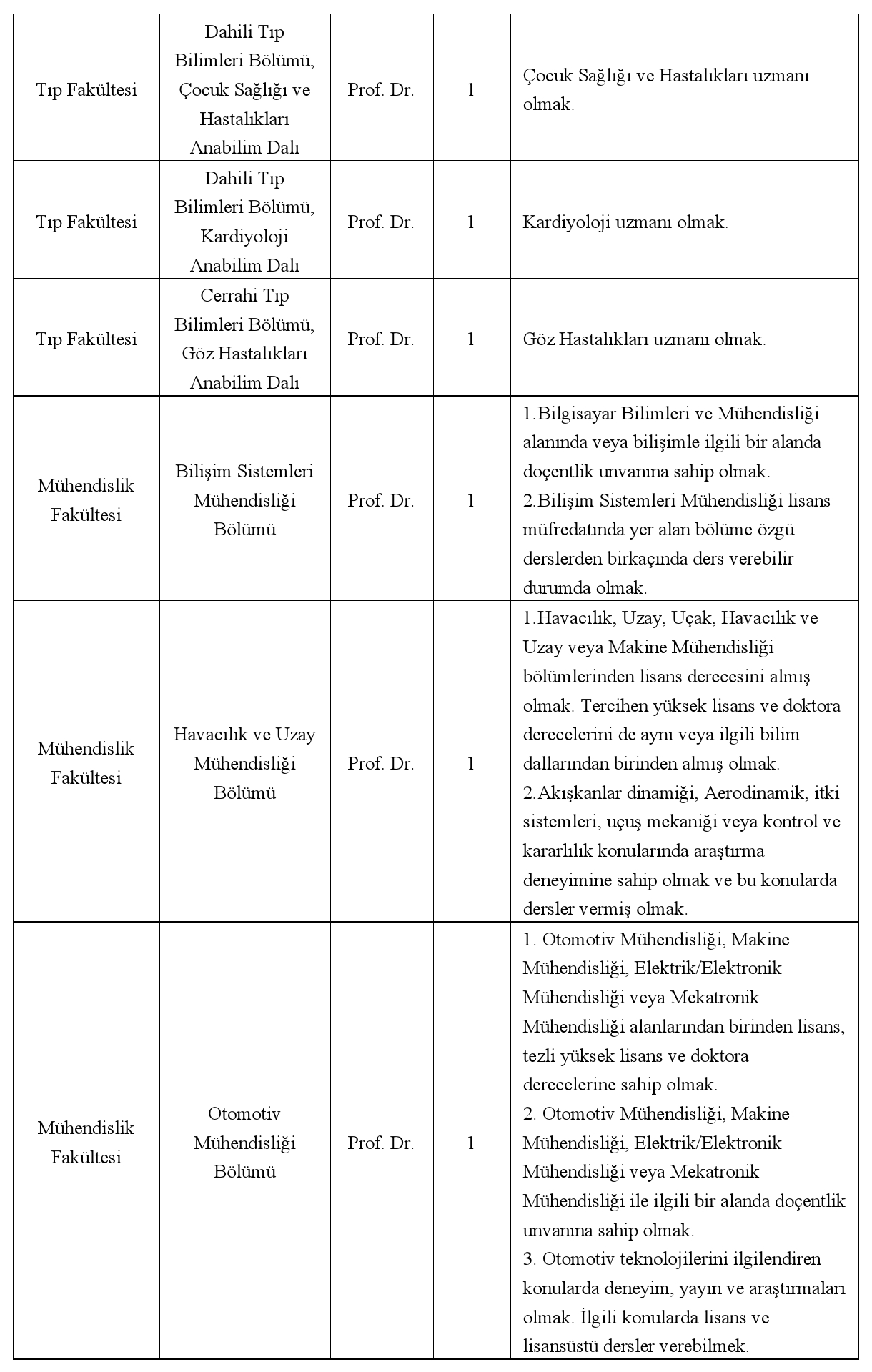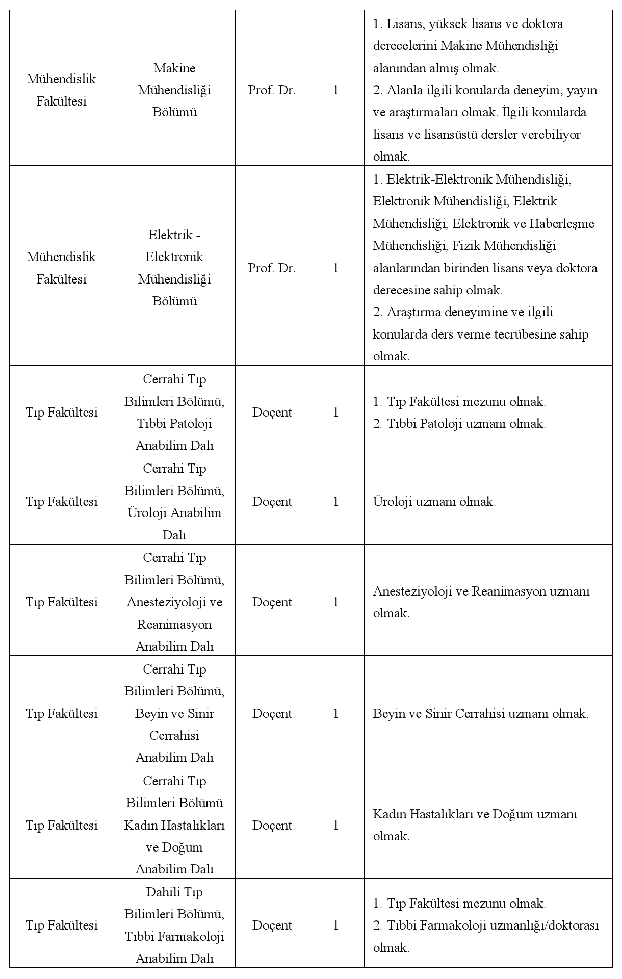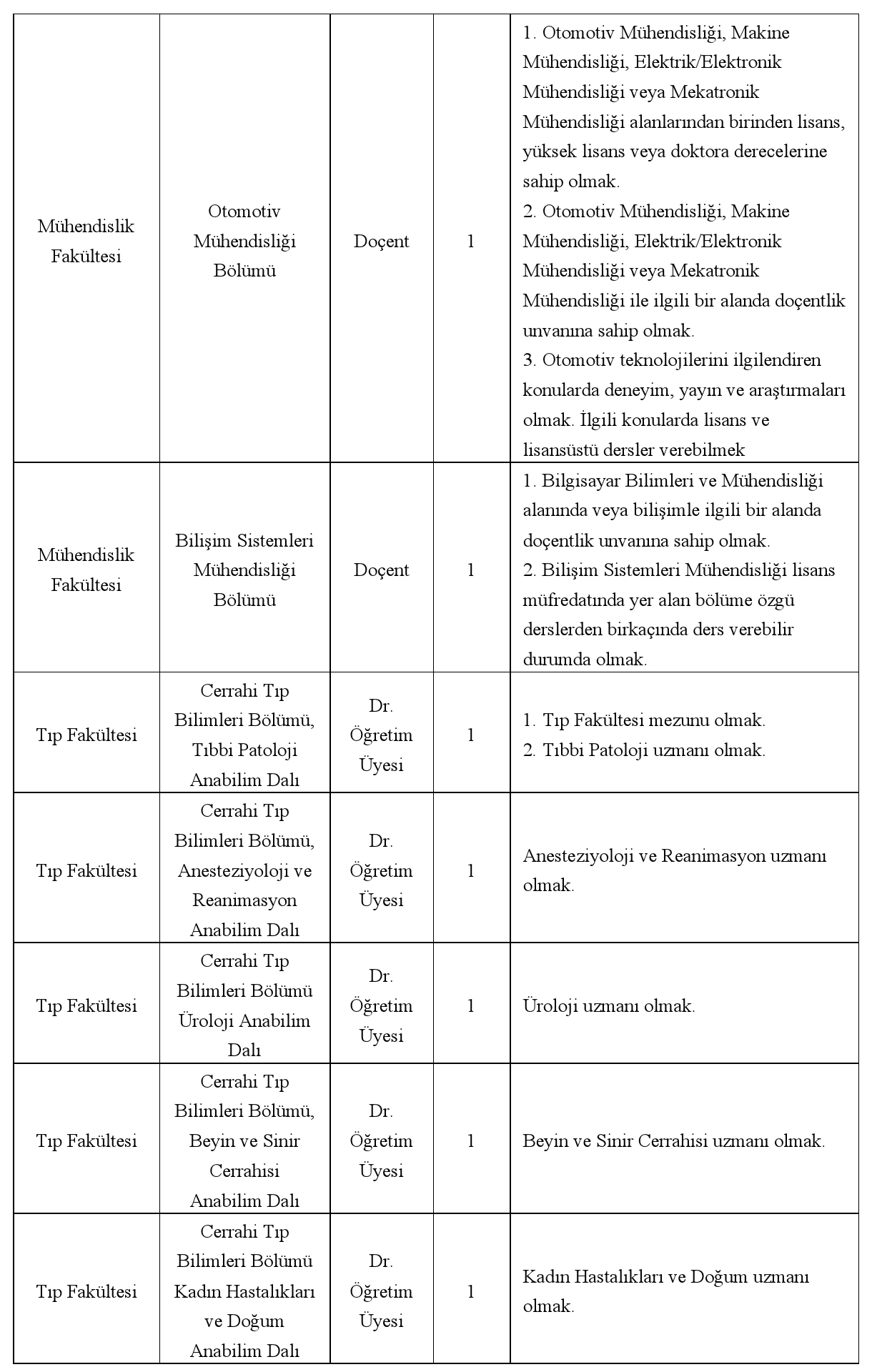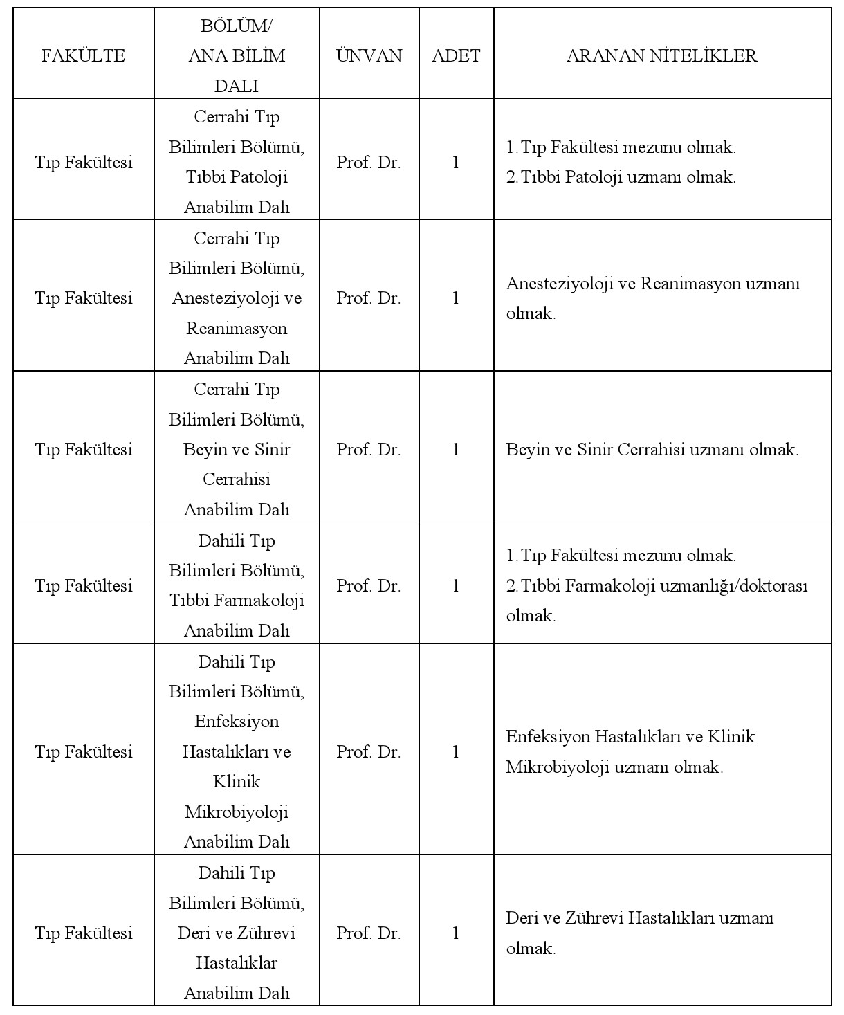 Aranılan Nitelikler: