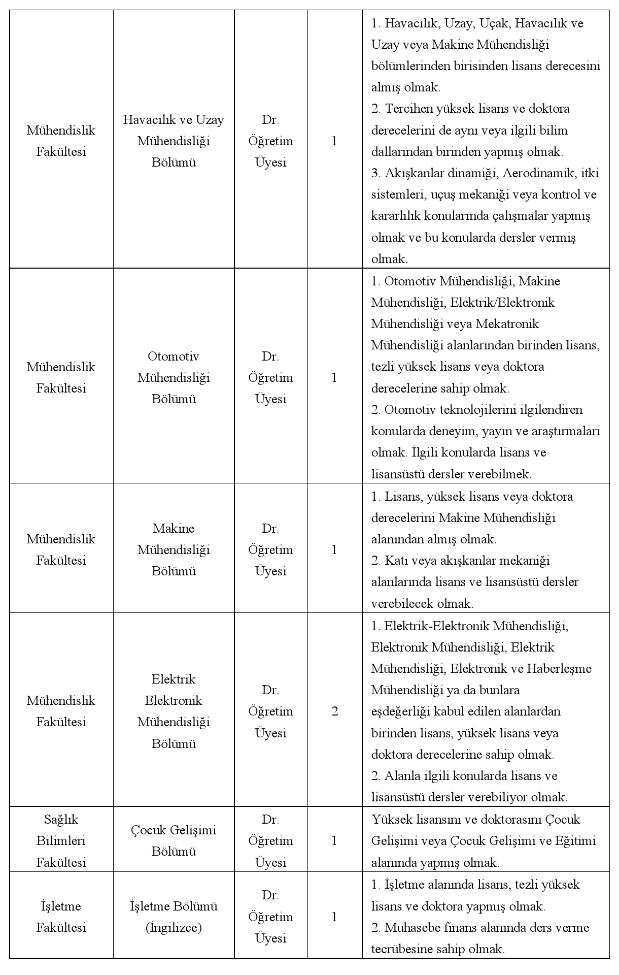2547 sayılı Yükseköğretim Kanunu ve ilgili Yönetmeliklere göre öğretim üyesi/öğretim görevlisi/araştırma görevlisi alınacaktır. Web sayfamızda (www.atilim.edu.tr) belirtilen koşulları sağlayan adayların, istenilen belgeleri bir dilekçe ekinde ilanın yayımlandığı tarih itibarı ile 15 gün içerisinde 14/11/2025 tarihine kadar ilgili "Dekanlıklara" şahsen veya posta yolu ile başvurmaları gerekir. Süresi içinde yapılmayan, posta-kargo nedeniyle geciken ve eksik belgeli başvurular dikkate alınmayacaktır. Öğretim üyesi dışındaki öğretim elemanı sonuçları web sayfamızda yayınlanacak olup bu aynı zamanda tebligat niteliğindedir. Ayrıca tebligat yapılmayacaktır.