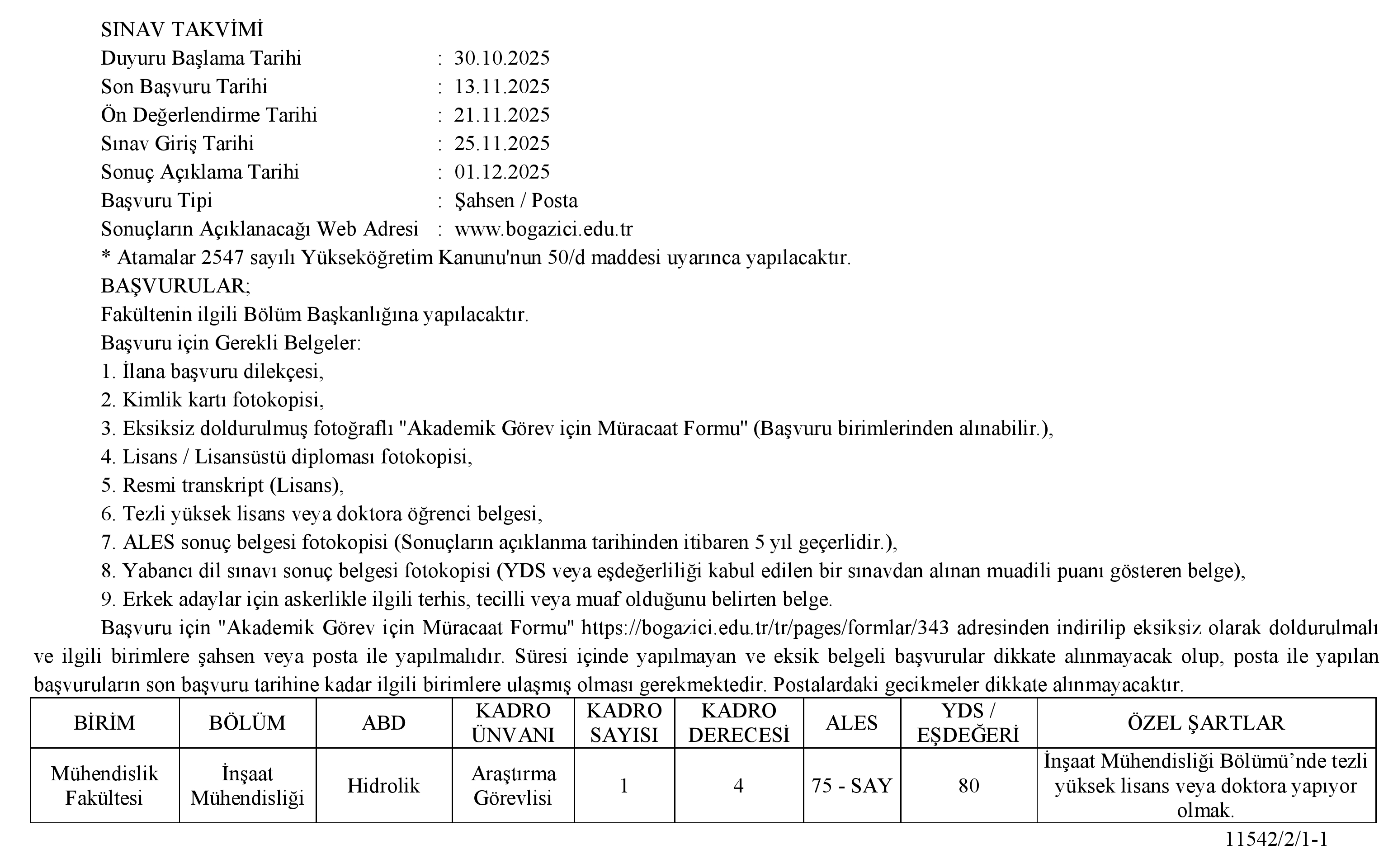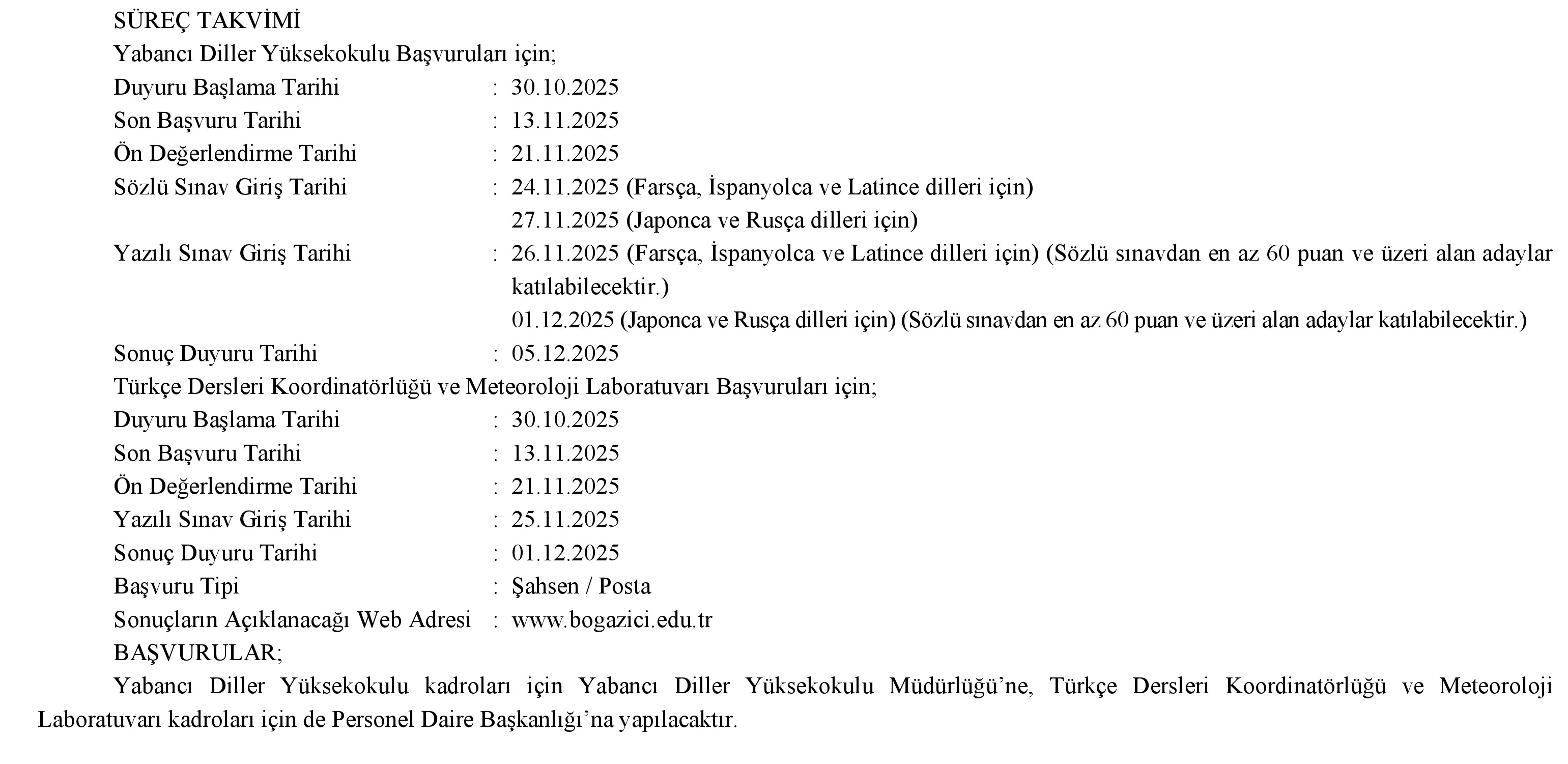 Boğaziçi Üniversitesi Öğretim Üyesi ve Elemanı Alım İlanı. Son başvuru tarihi 13 Kasım 2025