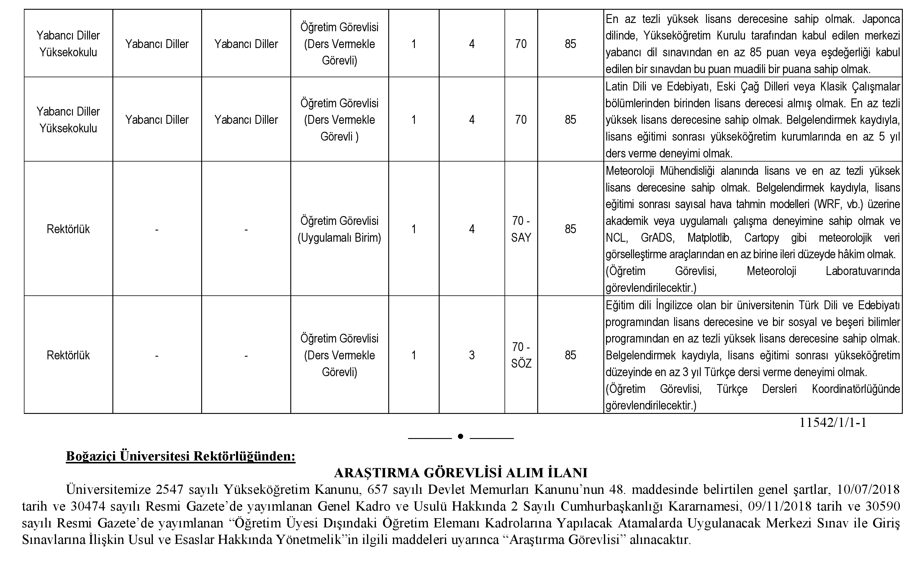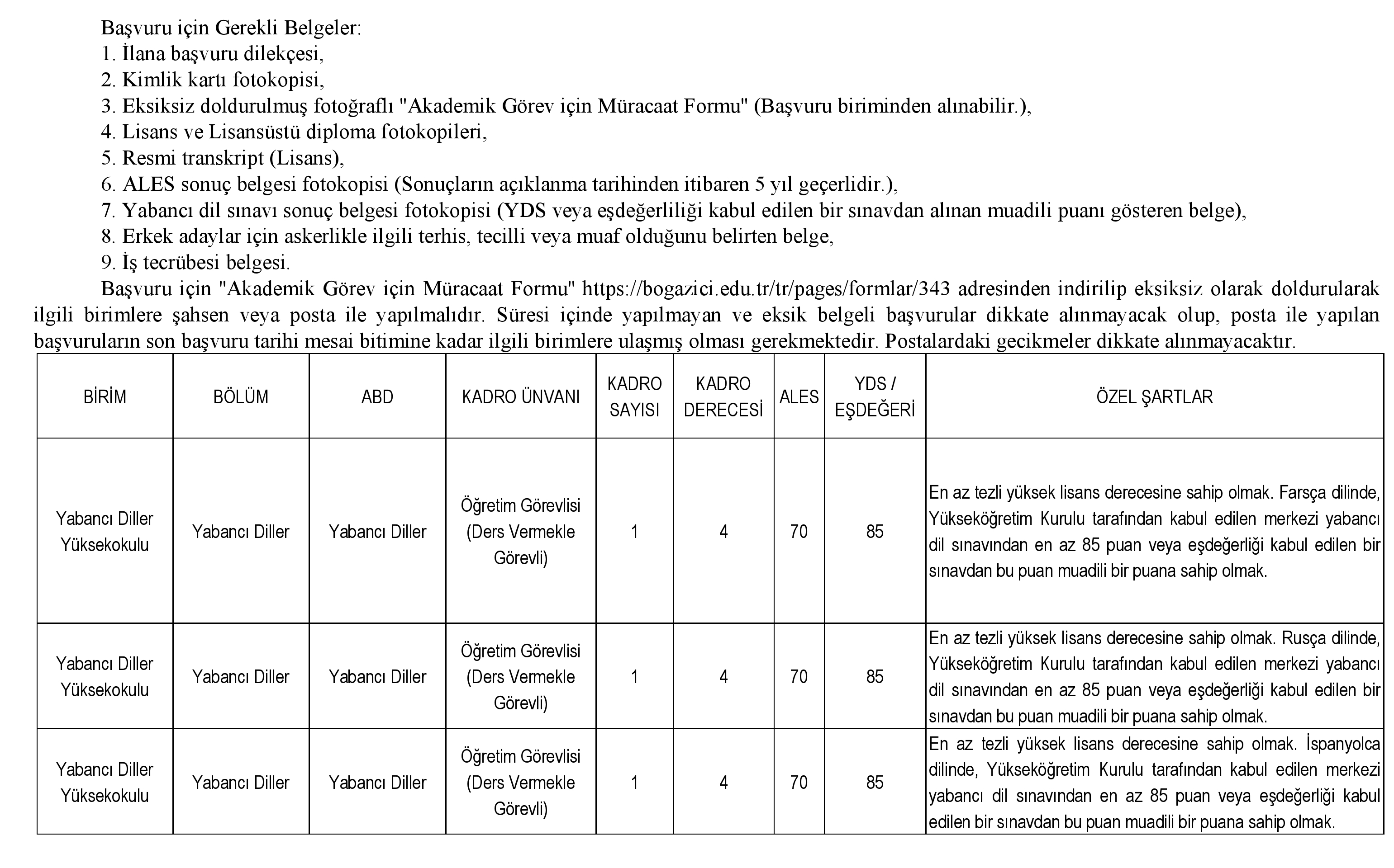 Boğaziçi Üniversitesi Öğretim Üyesi ve Elemanı Alım İlanı