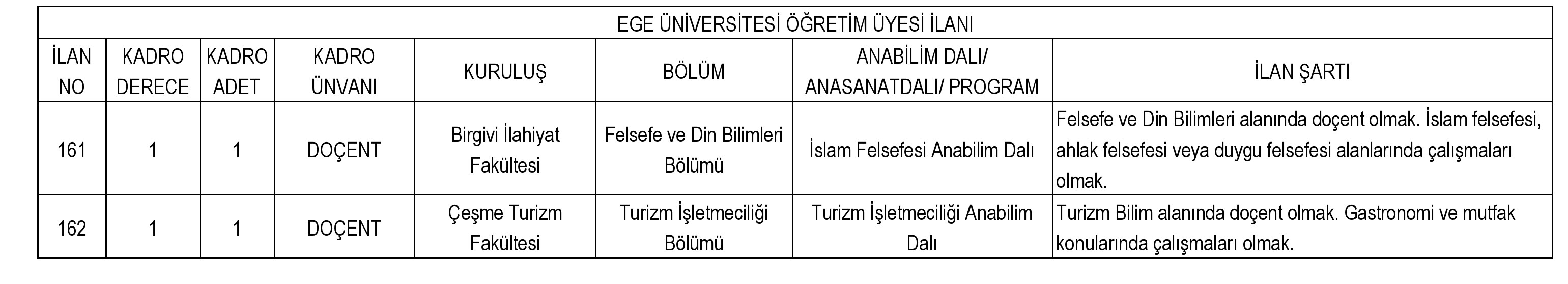 İlanımız "www.ege.edu.tr" adresinde yayınlanacaktır.