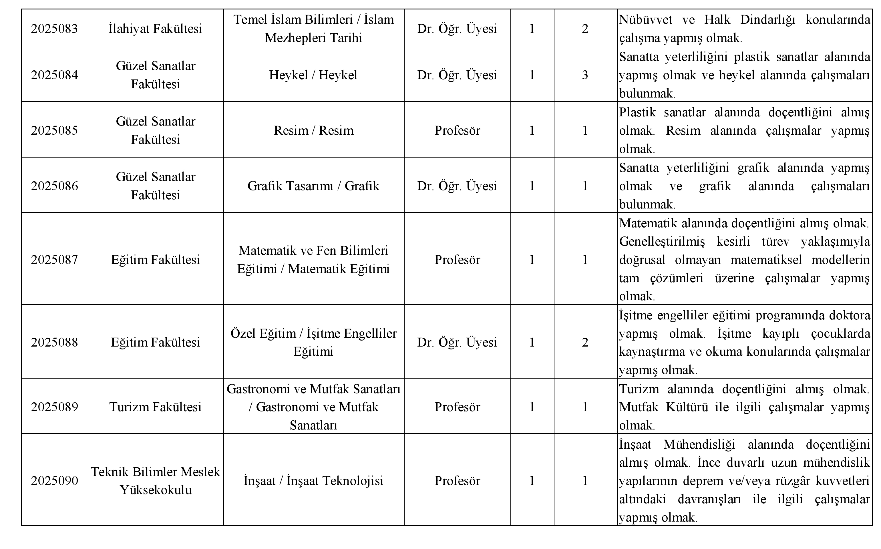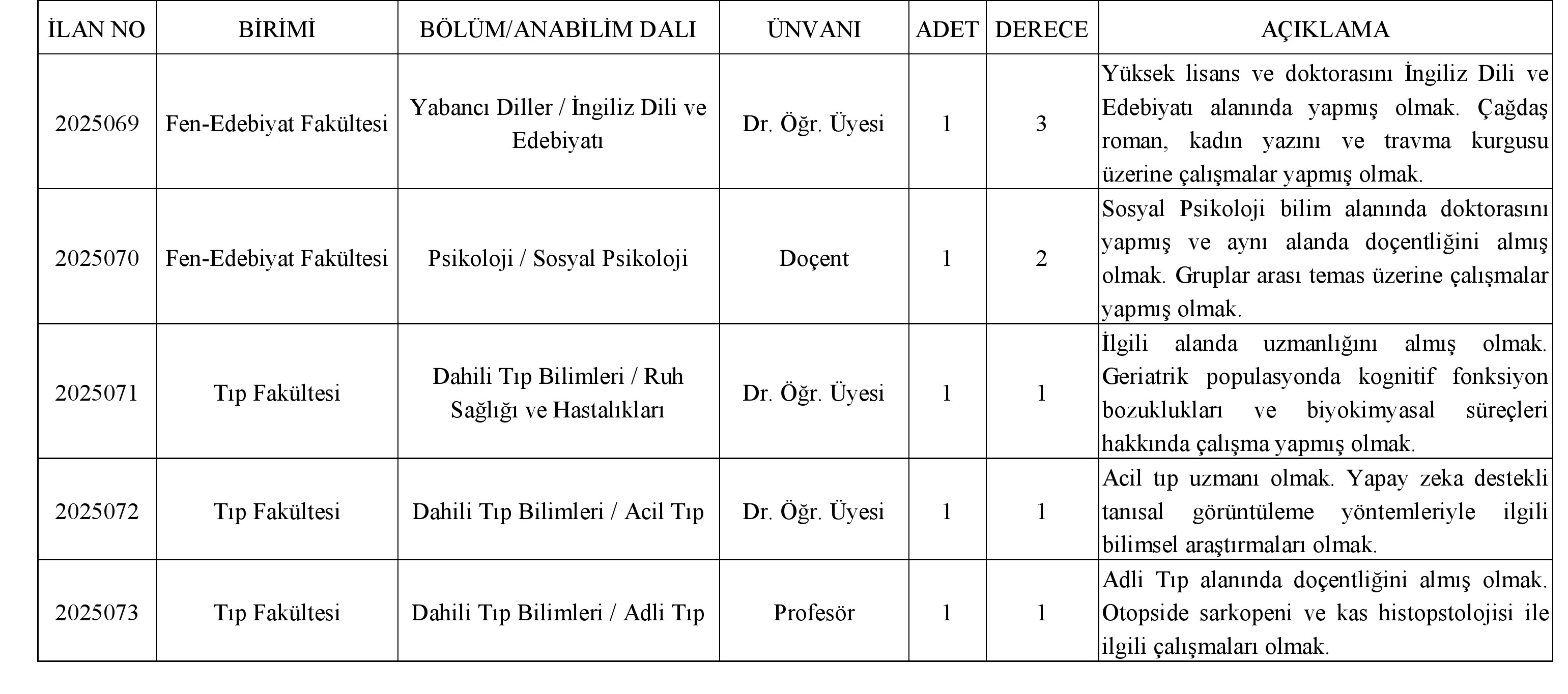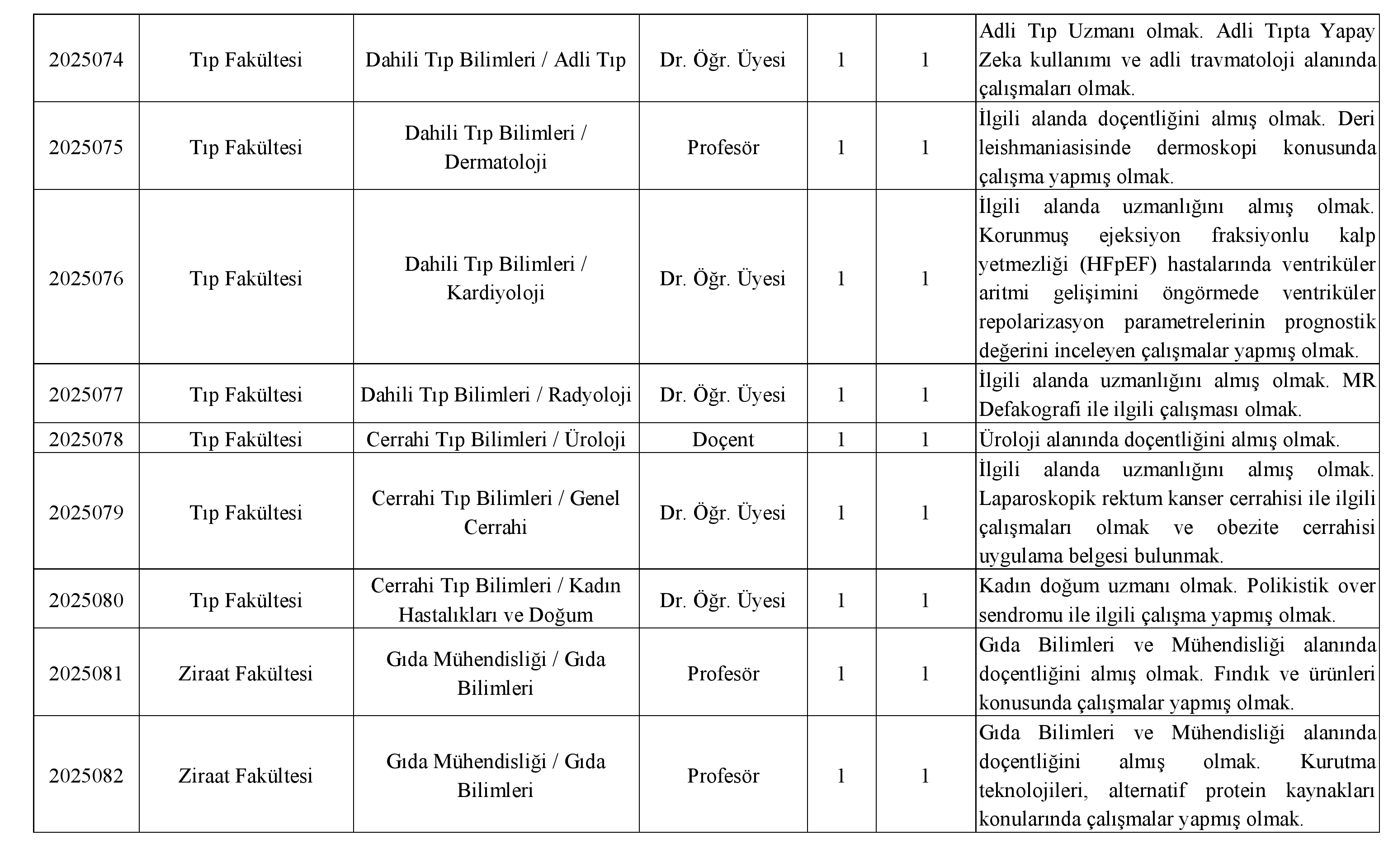 *Tıp Fakültesi kadrolarına başvuruda bulunacak adaylardan, halen Sağlık Bakanlığında görev yapanların uzmanlık belgelerini sunmak kaydıyla mecburi hizmet yükümlülüklerinin en geç üç ay içinde bitireceklerini belgelendirmeleri zorunludur.