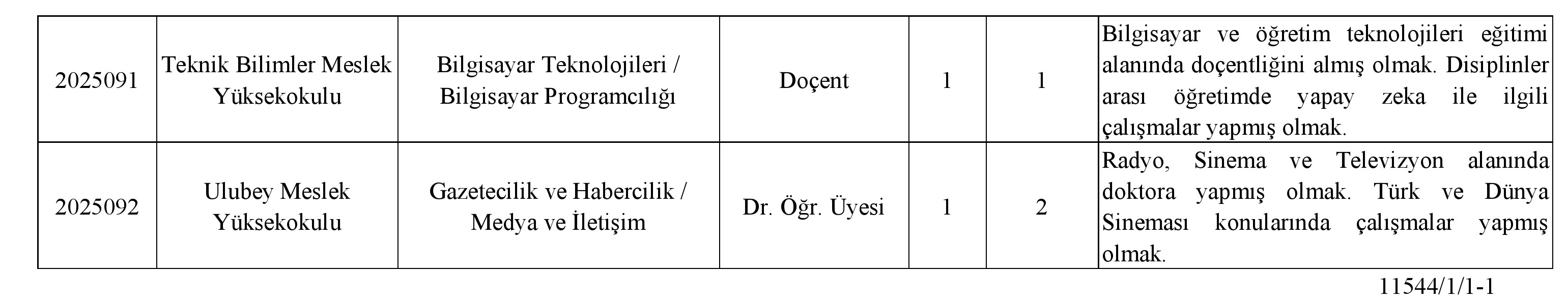 -Meslek yüksekokullarının Yükseköğretim Kurulu tarafından belirlenen uzmanlık alanlarındaki öğretim görevlisi kadrolarına başvuracak adaylarda en az tezli yüksek lisans derecesine sahip olmak ya da lisans mezunu olup belgelendirmek kaydıyla alanında en az iki yıl tecrübe sahibi olmak şartı aranır.