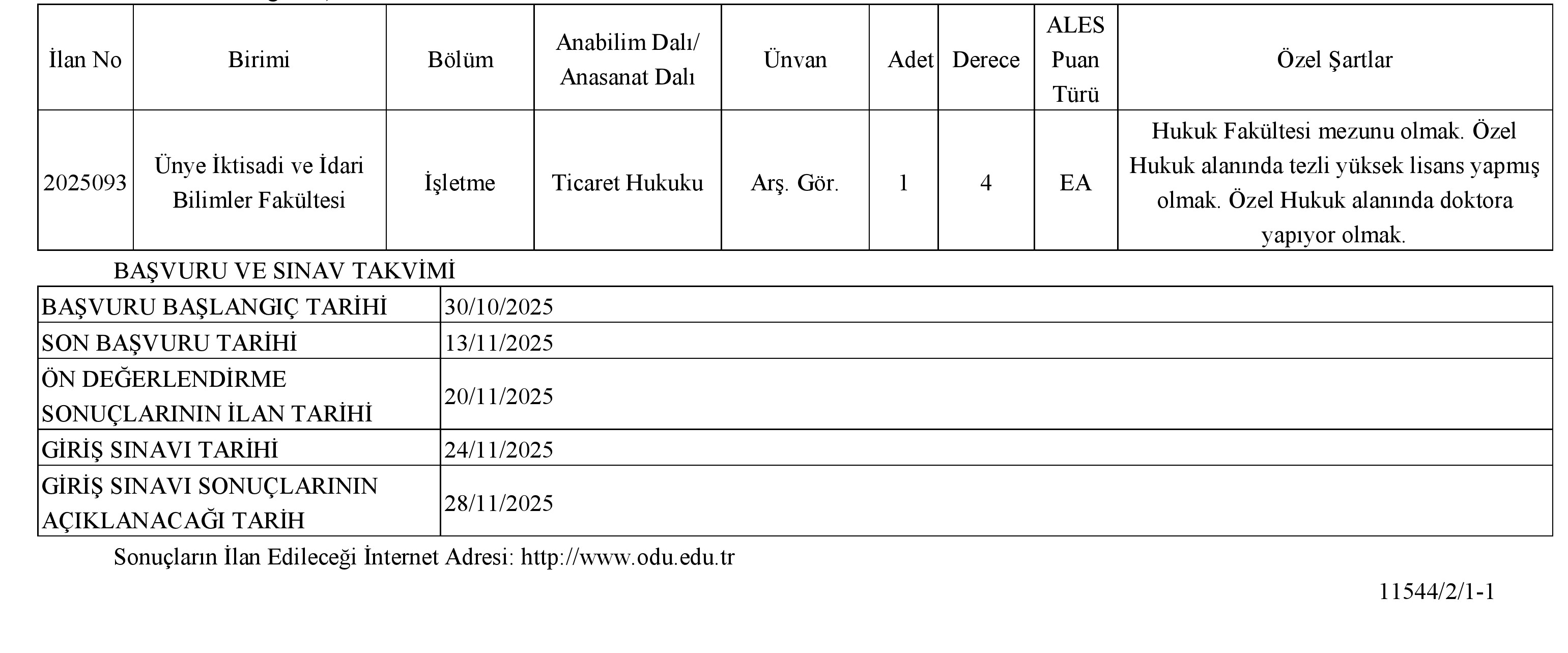 Ordu Üniversitesi Öğretim Üyesi ve Elemanı Alım İlanı. Son başvuru tarihi 13 Kasım 2025