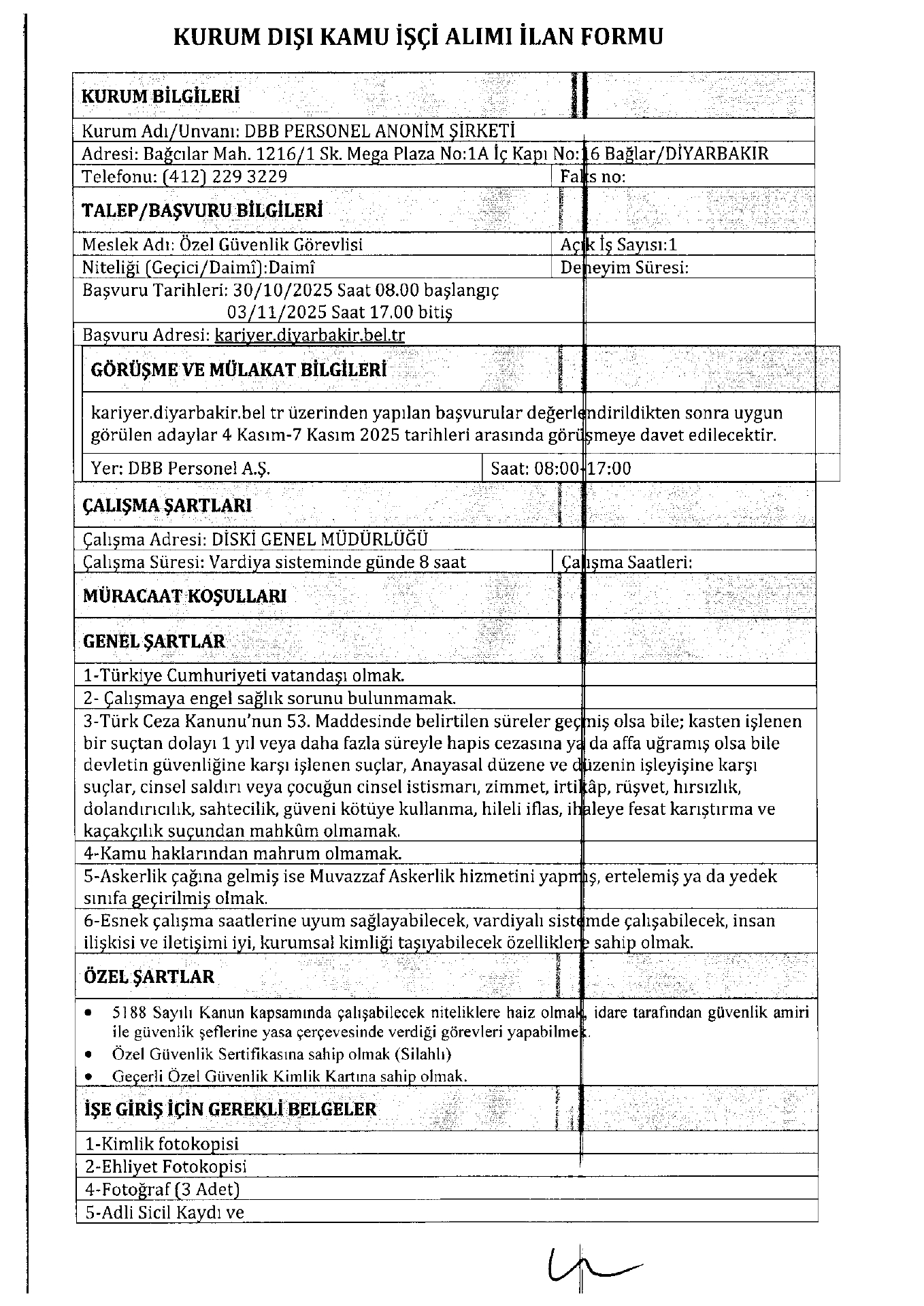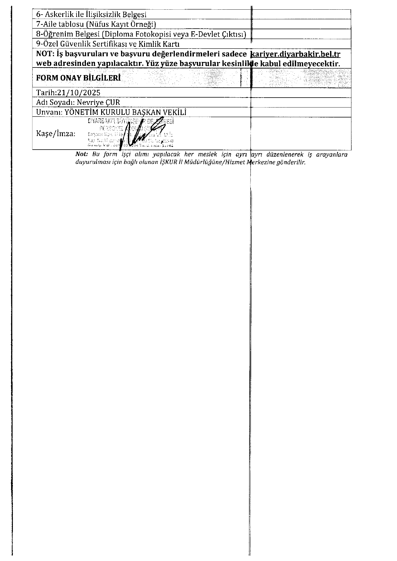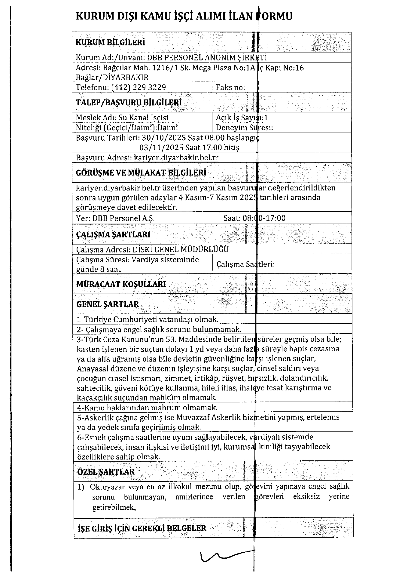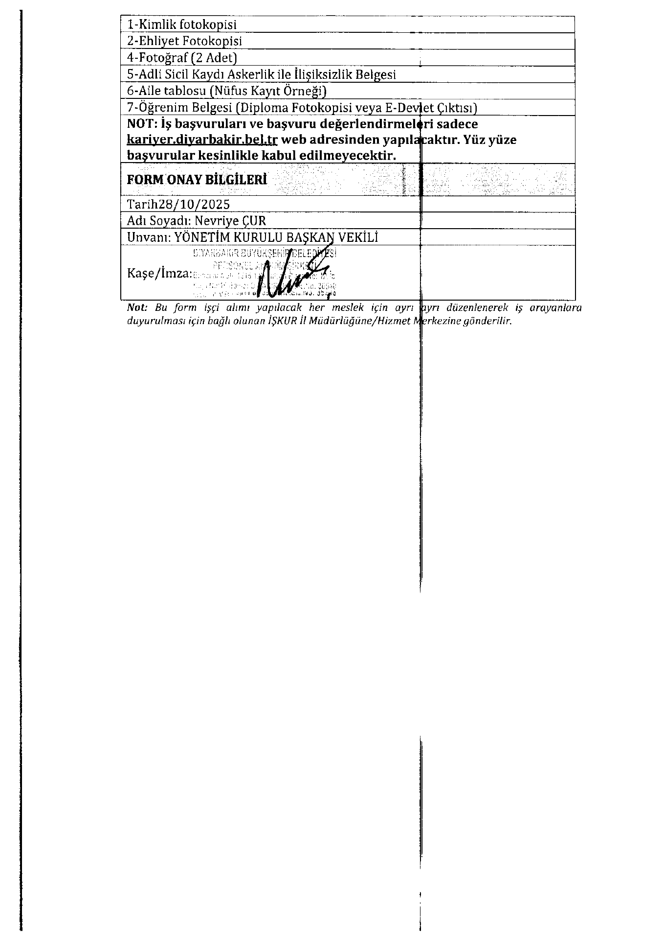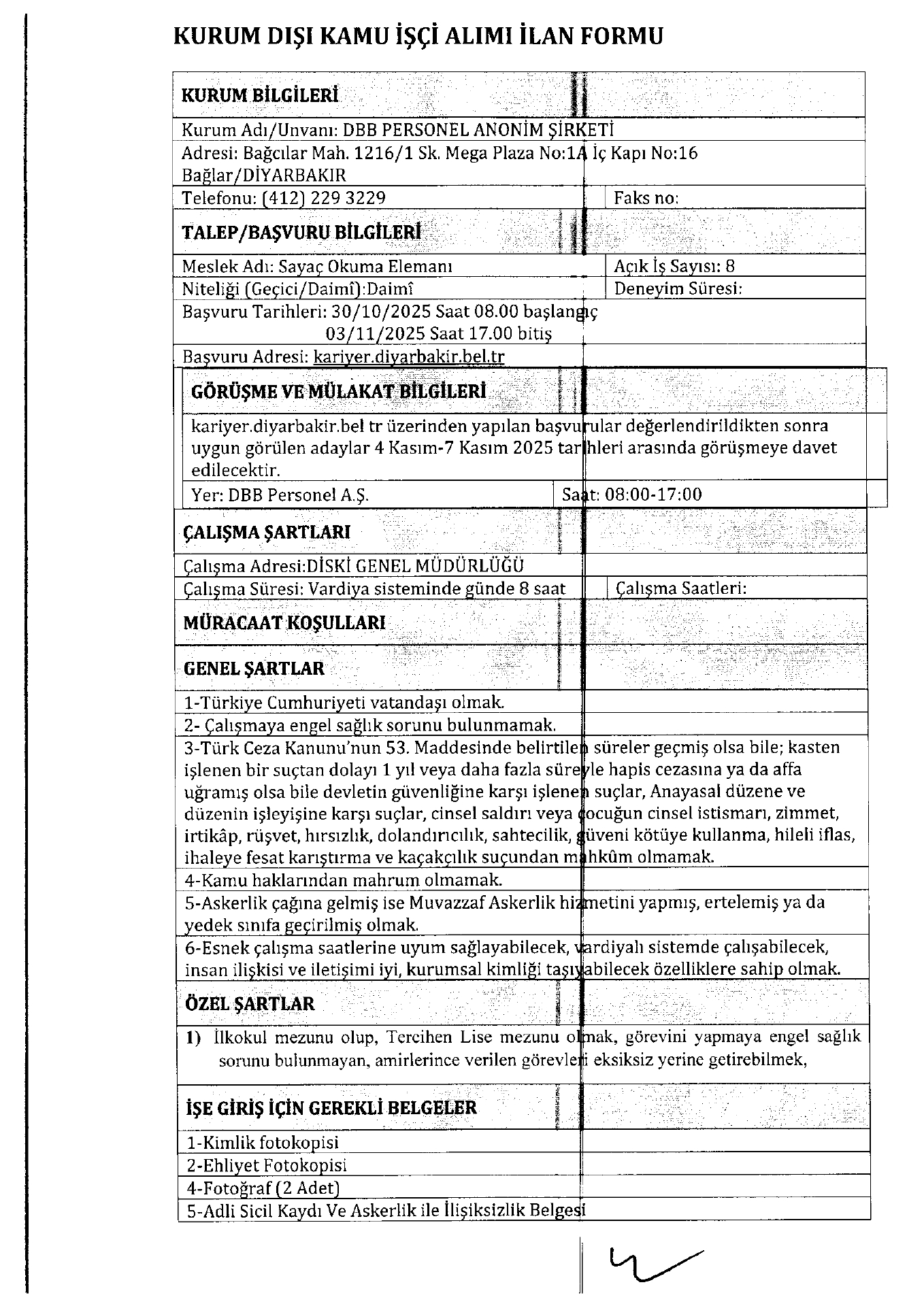 Diyarbakır Büyükşehir Belediyesi 10 İşçi Alacak. Son başvuru tarihi 3 Kasım 2025
