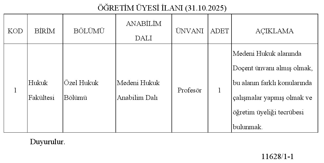 Üniversitemiz gerekli durumlarda ilan dahil işe alım sürecinin her aşamasında iptal ve/veya değişiklik yapma hakkına sahiptir ve web sitemiz üzerinden yapılacak duyurular tebligat yerine geçecektir.