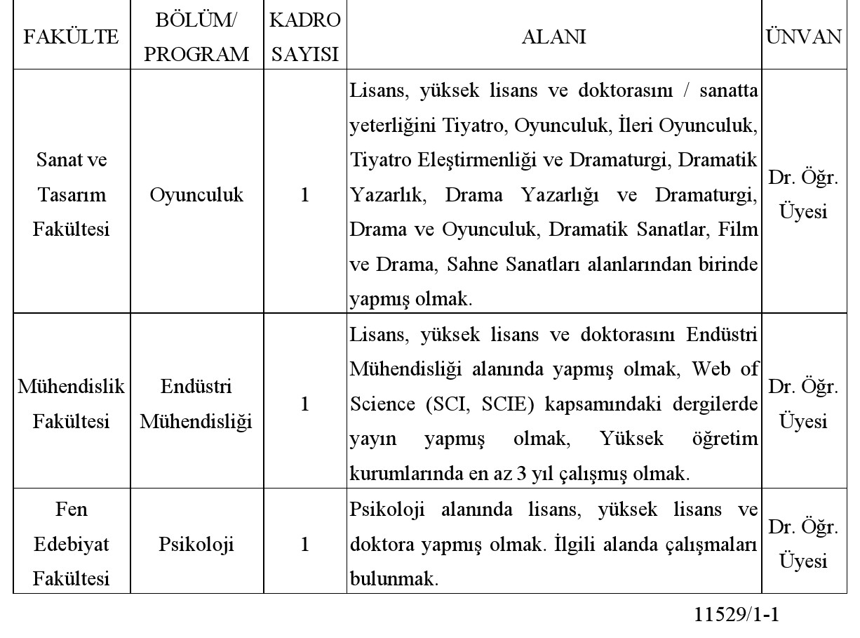 Üniversitemizin aşağıda belirtilen birimlerinde açık bulunan kadrolarına 2547 sayılı Yükseköğretim Kanununun 23. maddeleri ile Öğretim Üyeliğine Yükseltilme ve Atanma Yönetmeliğinin ilgili maddeleri uyarınca, Öğretim Üyeleri alınacaktır.