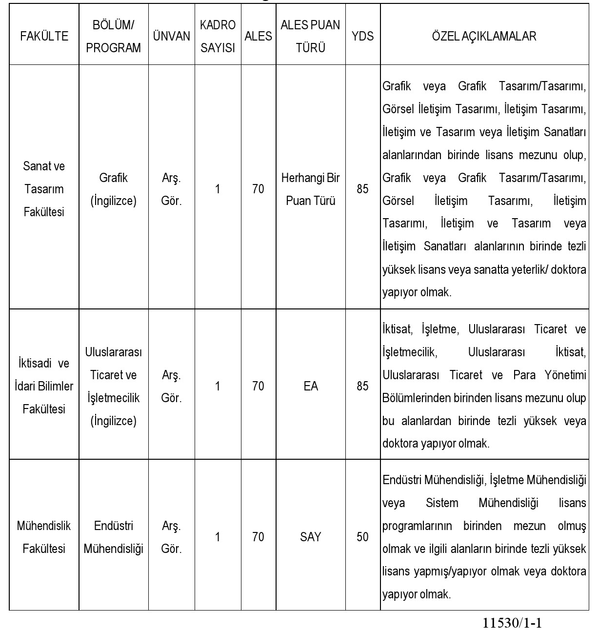2547 sayılı Yükseköğretim Kanununda belirtilen koşullar ile 09.11.2018 tarihli 30590 sayılı Resmi Gazete'de yayımlanan "Öğretim Üyesi Dışındaki Öğretim Elemanı Kadrolarına Yapılacak Atamalarda Uygulanacak Merkezi Sınav ile Giriş Sınavlarına İlişkin Usul ve Esaslar Hakkında Yönetmelik" Hükümleri ve 17 Nisan 2020 tarihli ve 31102 sayılı Resmi Gazete'de yayımlanan "Yükseköğretim Kanunu İle Bazı Kanunlarda Değişiklik Yapılmasına Dair Kanun" maddesi uyarınca, ARAŞTIRMA GÖREVLİSİ alınacaktır.