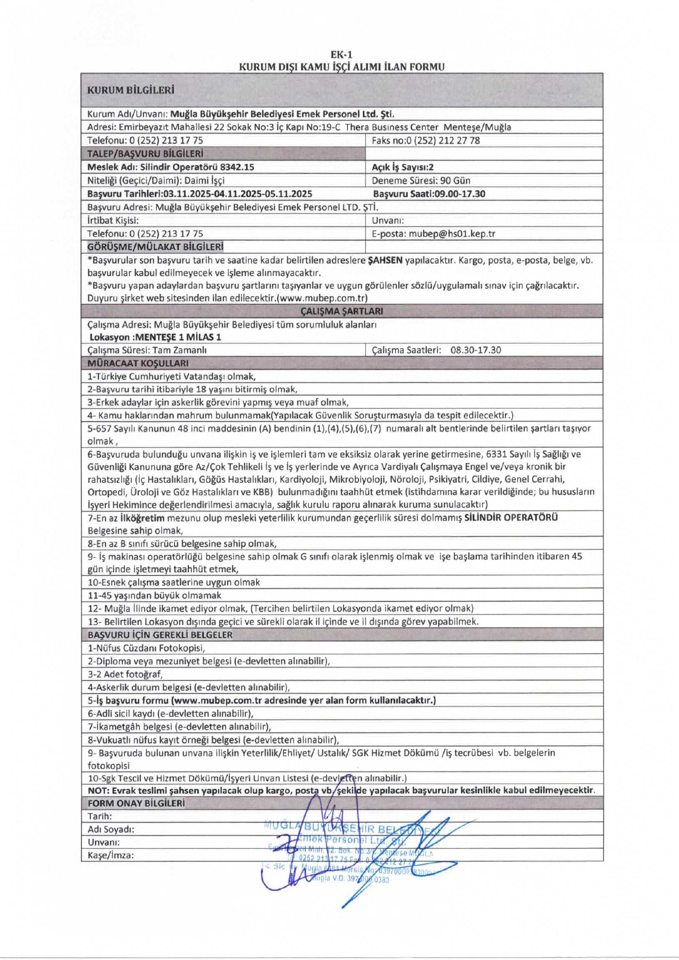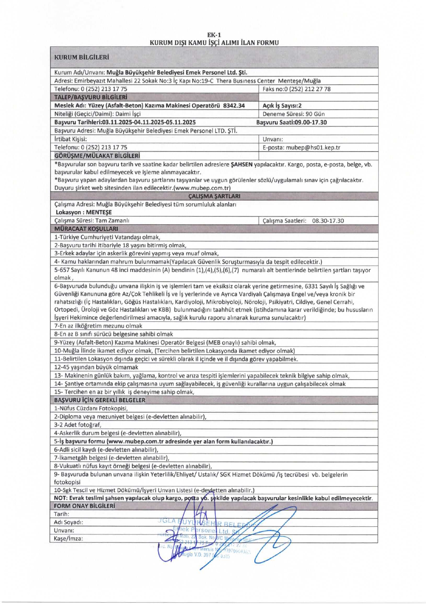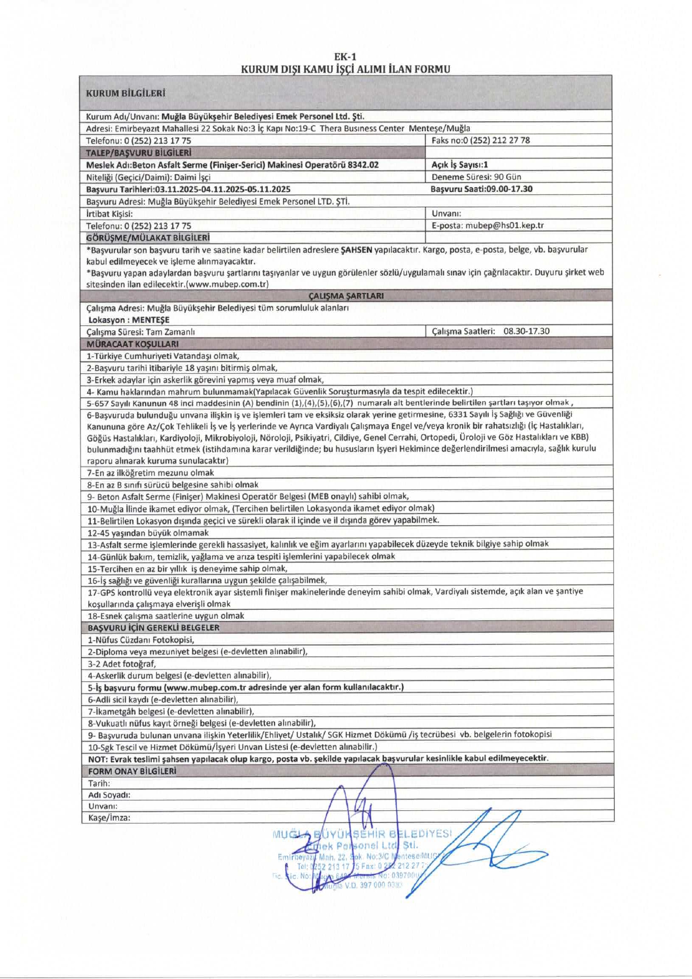 Muğla Büyükşehir Belediyesi 15 İşçi Alacak. Son başvuru tarihi 5 Kasım 2025