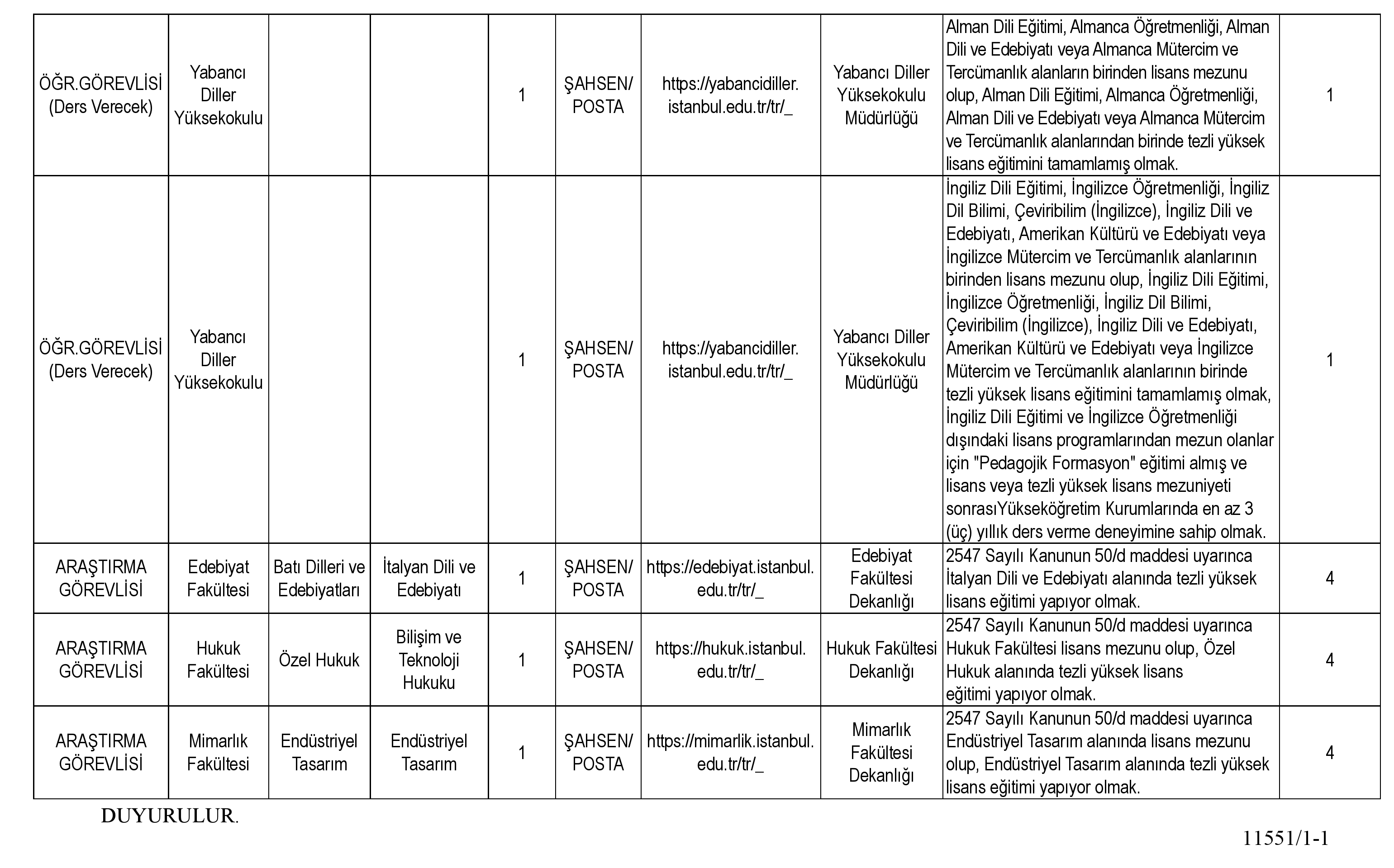 11. İlanımıza http://www.istanbul.edu.tr/ adresinden ulaşılabilir.