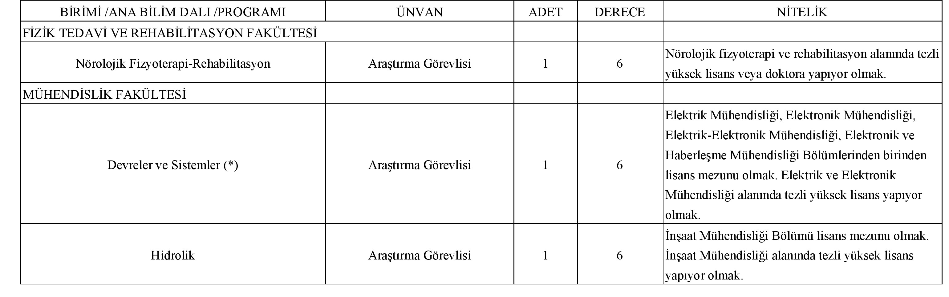 Üniversitemiz birimlerine 2547 sayılı Kanun'un ilgili maddeleri ve 09.11.2018 tarihli Resmi Gazete'de yayımlanarak yürürlüğe giren "Öğretim Üyesi Dışındaki Öğretim Elemanı Kadrolarına Yapılacak Atamalarda Uygulanacak Merkezi Sınav ile Giriş Sınavlarına İlişkin Usul ve Esaslar Hakkında Yönetmelik" hükümleri uyarınca Öğretim Görevlisi ve Araştırma Görevlisi alınacaktır.