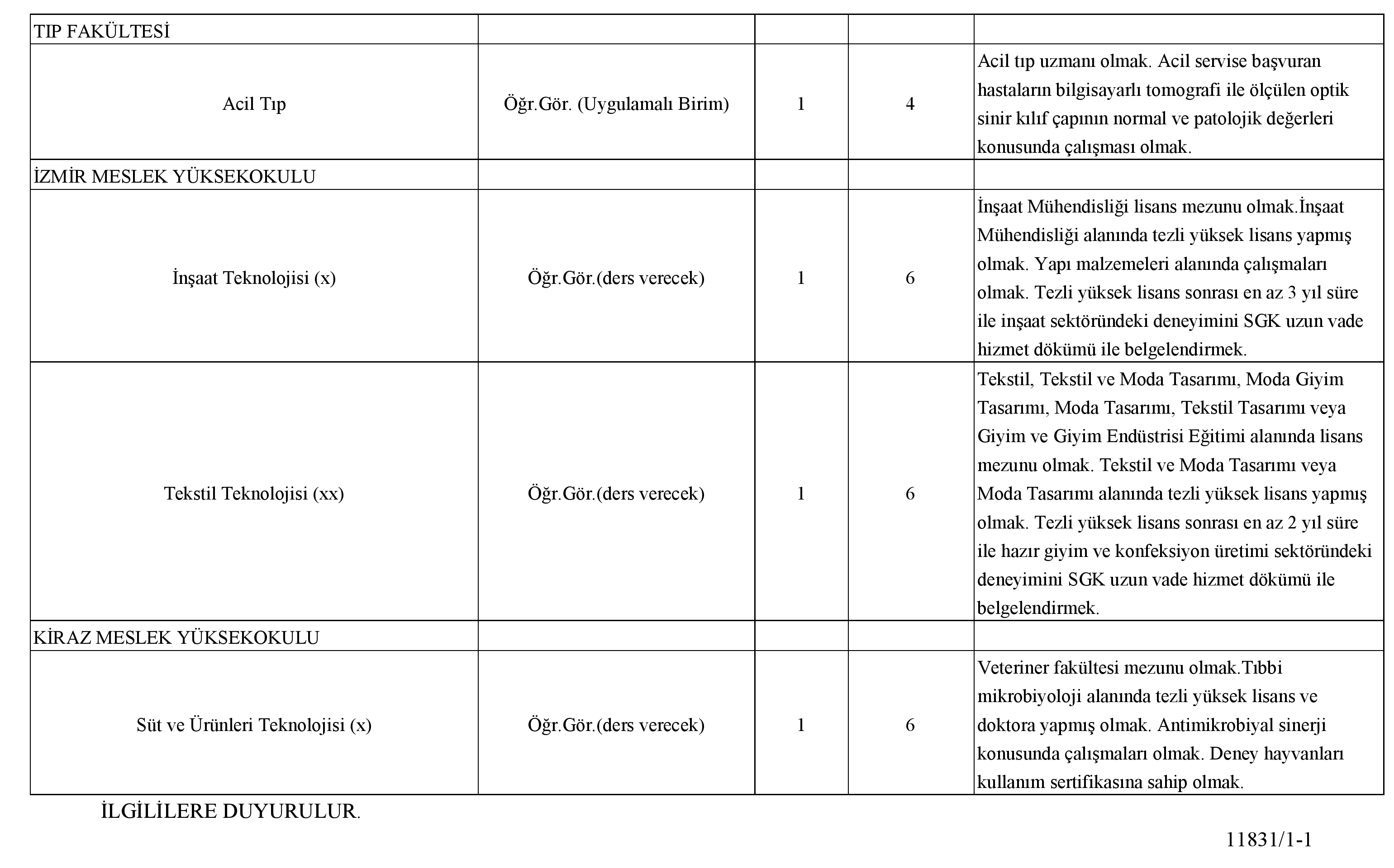Başvuruda bulunacakların ilanda belirtilen başvuru başlangıç tarihi ile son başvuru tarihi arasında ilgili birime başvurmaları gerekmektedir.