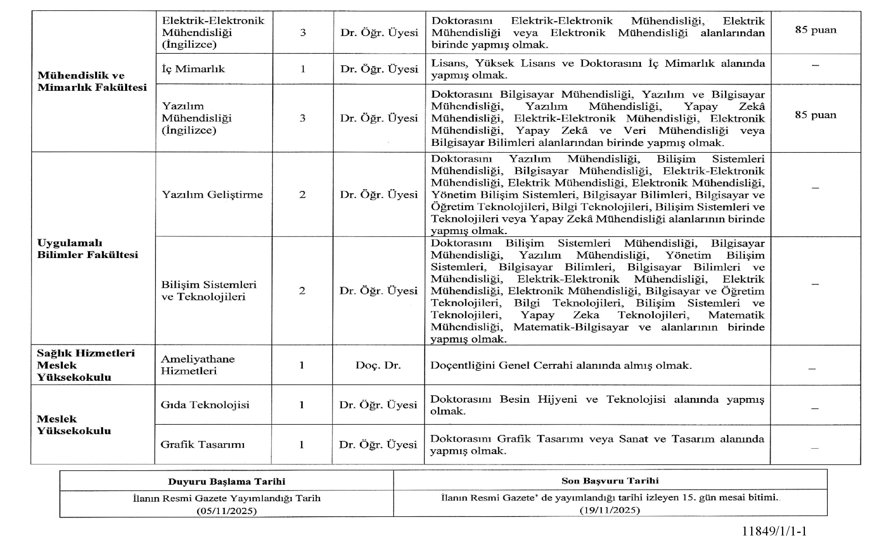 ÖĞRETİM ÜYESİ ALIM İLANI