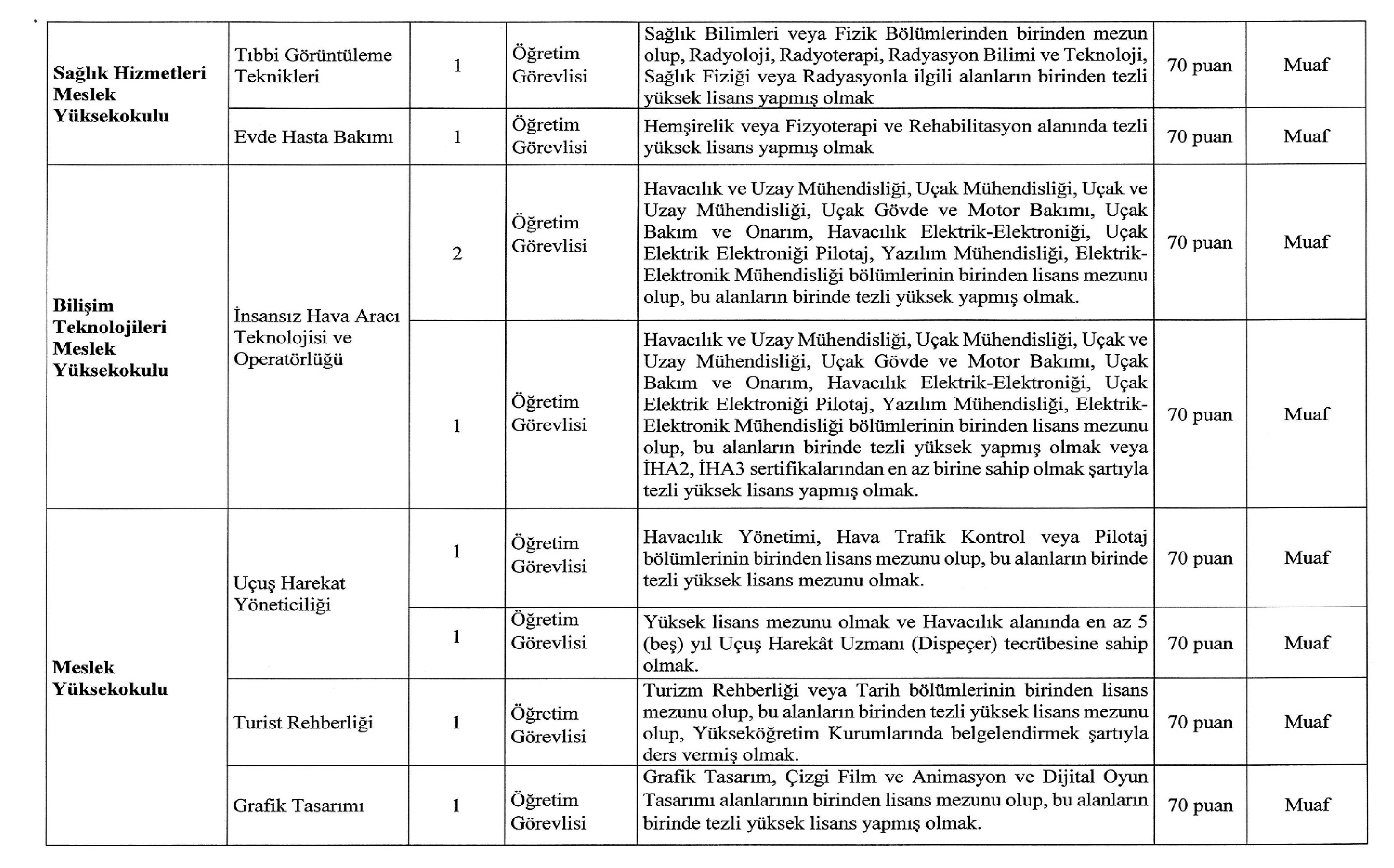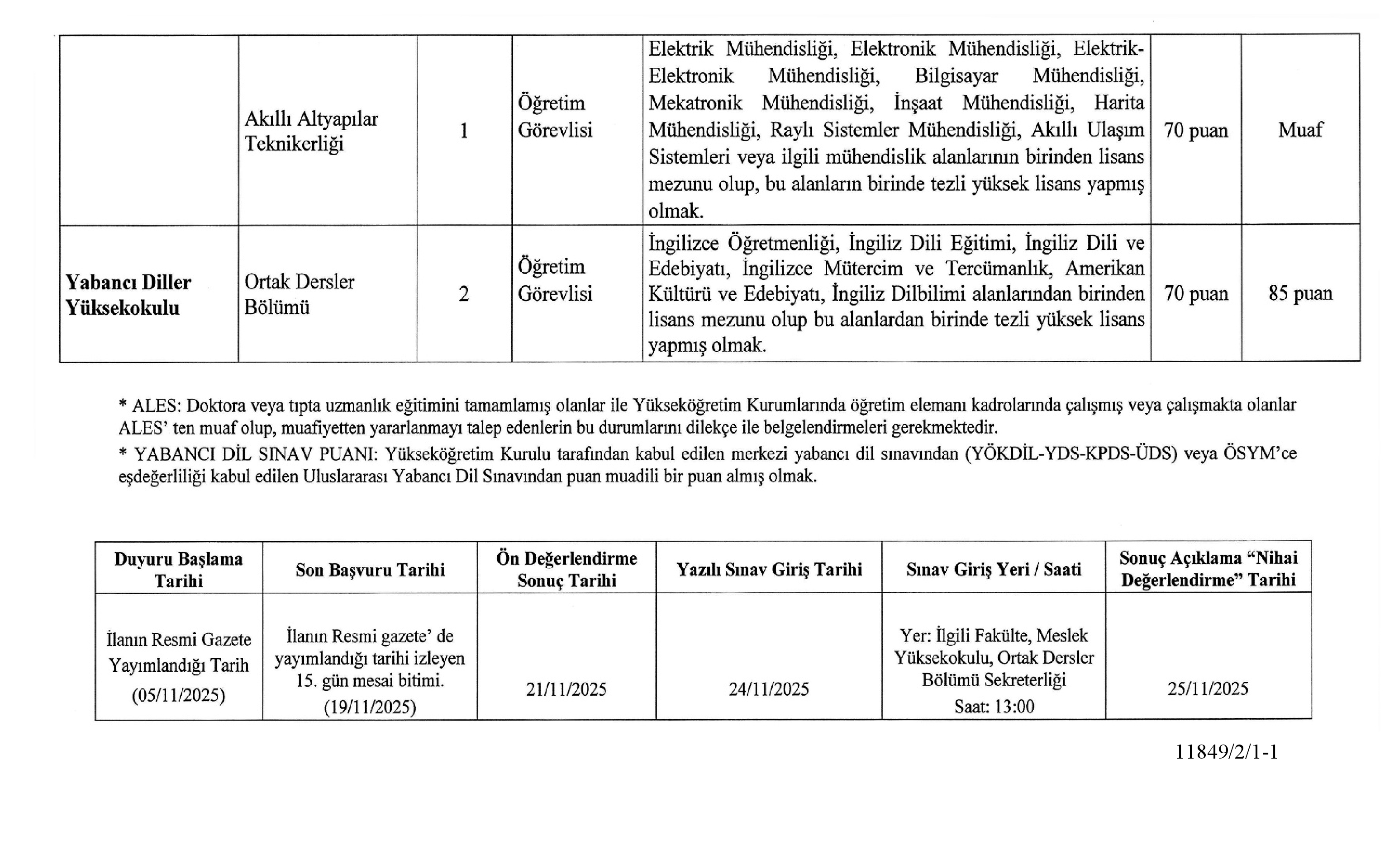 ÖĞRETİM ÜYESİ DIŞINDAKİ ÖĞRETİM ELEMANI KADROLARINA PERSONEL ALIM İLANI