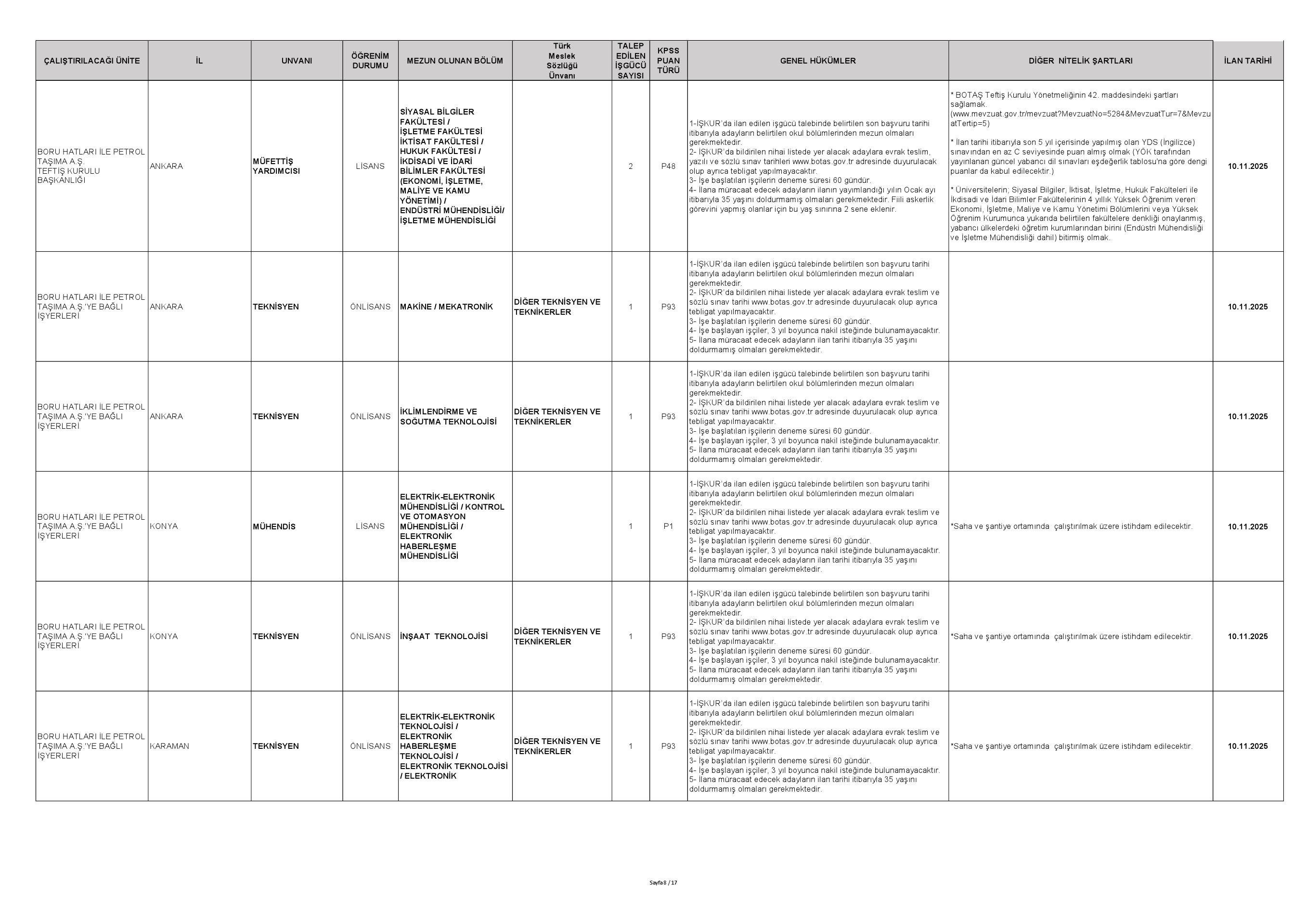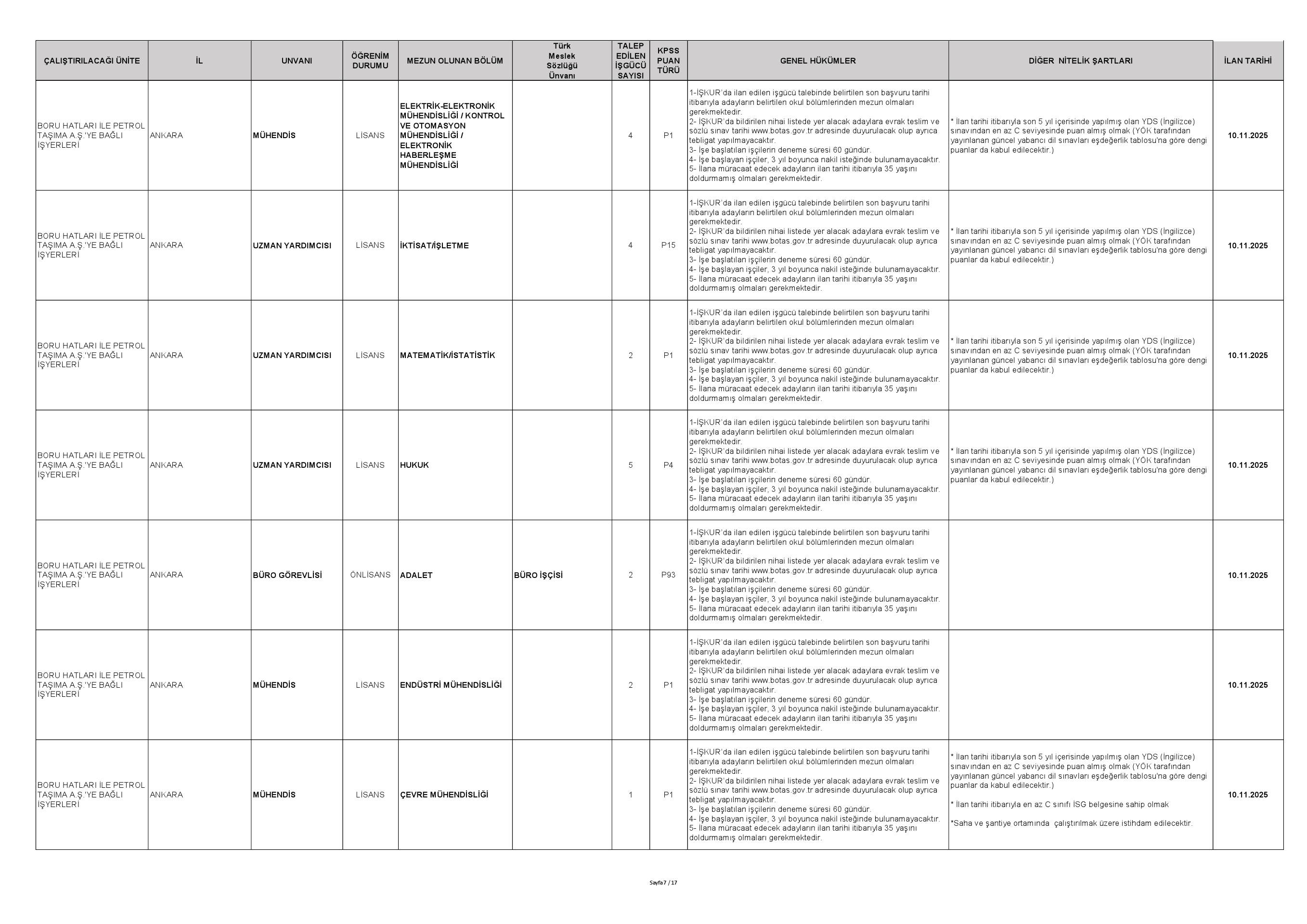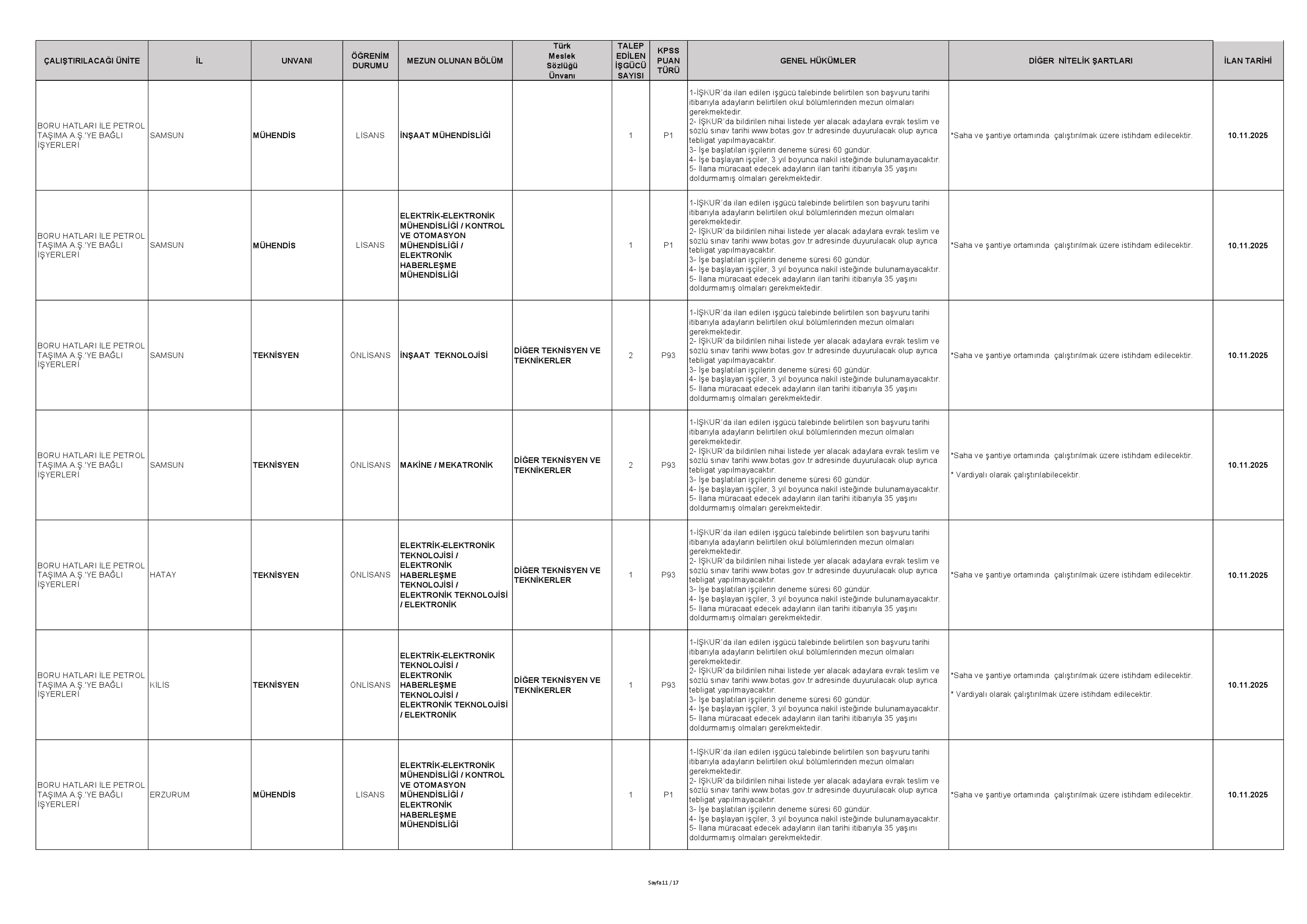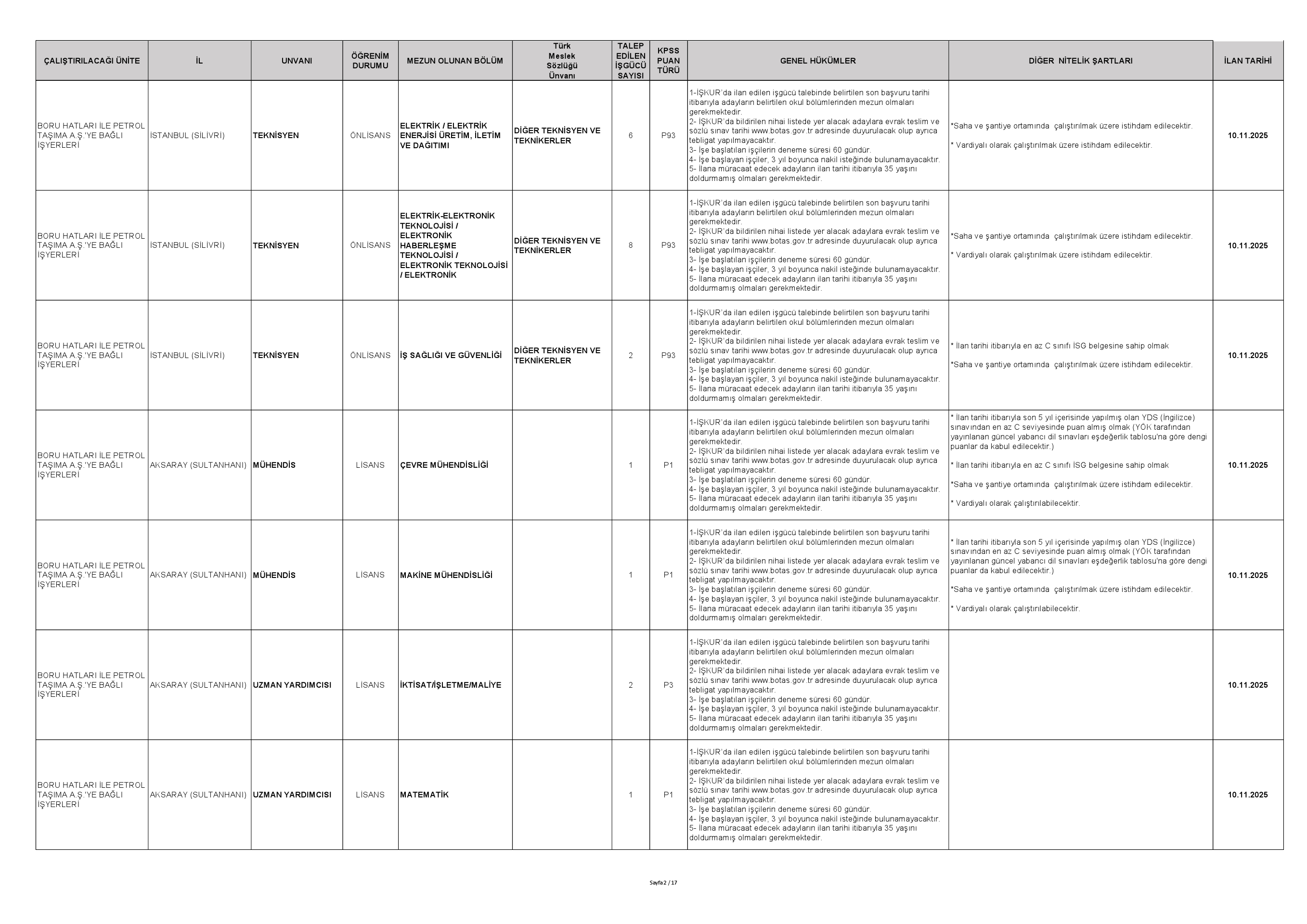 BOTAŞ 223 İşçi Alacak. Son başvuru tarihi 14 Kasım 2025