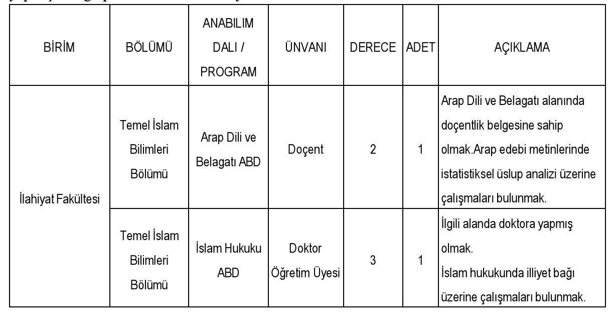 ÖĞRETİM ÜYESİ ALIM İLANI (2025-02)