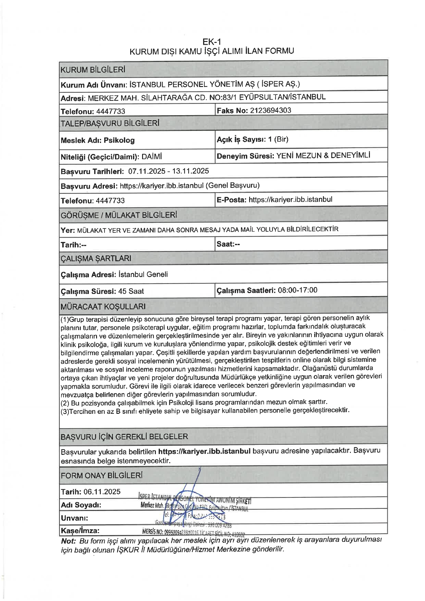 Ana sayfaDaimi İşçi İlanları İstanbul Personel Yönetim Aş. 1 İşçi Alacak İstanbul Personel Yönetim Aş. 1 İşçi Alacak. Son başvuru tarihi 13 Kasım 2025 Kaynak : İşkur İlan Giriş : 06 Kasım 2025 22:56, Son Güncelleme : 06 Kasım 2025 23:10 Yazdır Yorumlar (0) Abone Ol