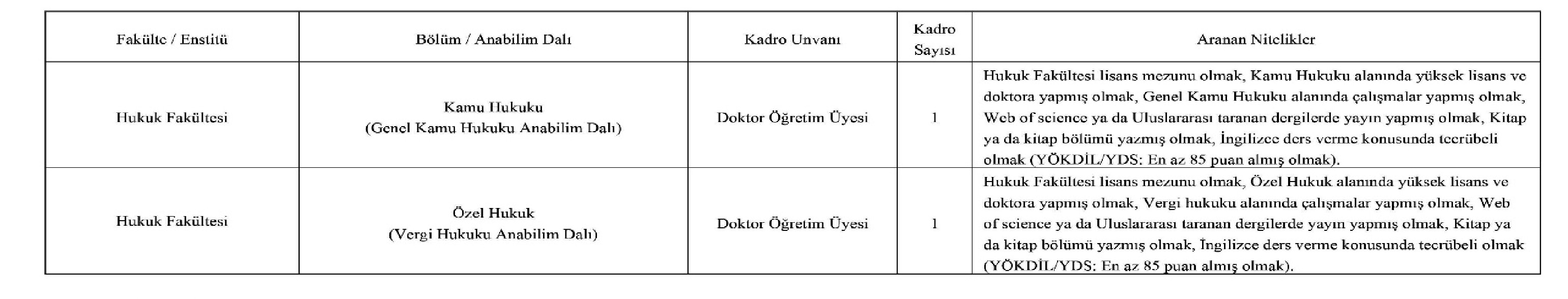ÖĞRETİM ÜYESİ ALIM İLANI