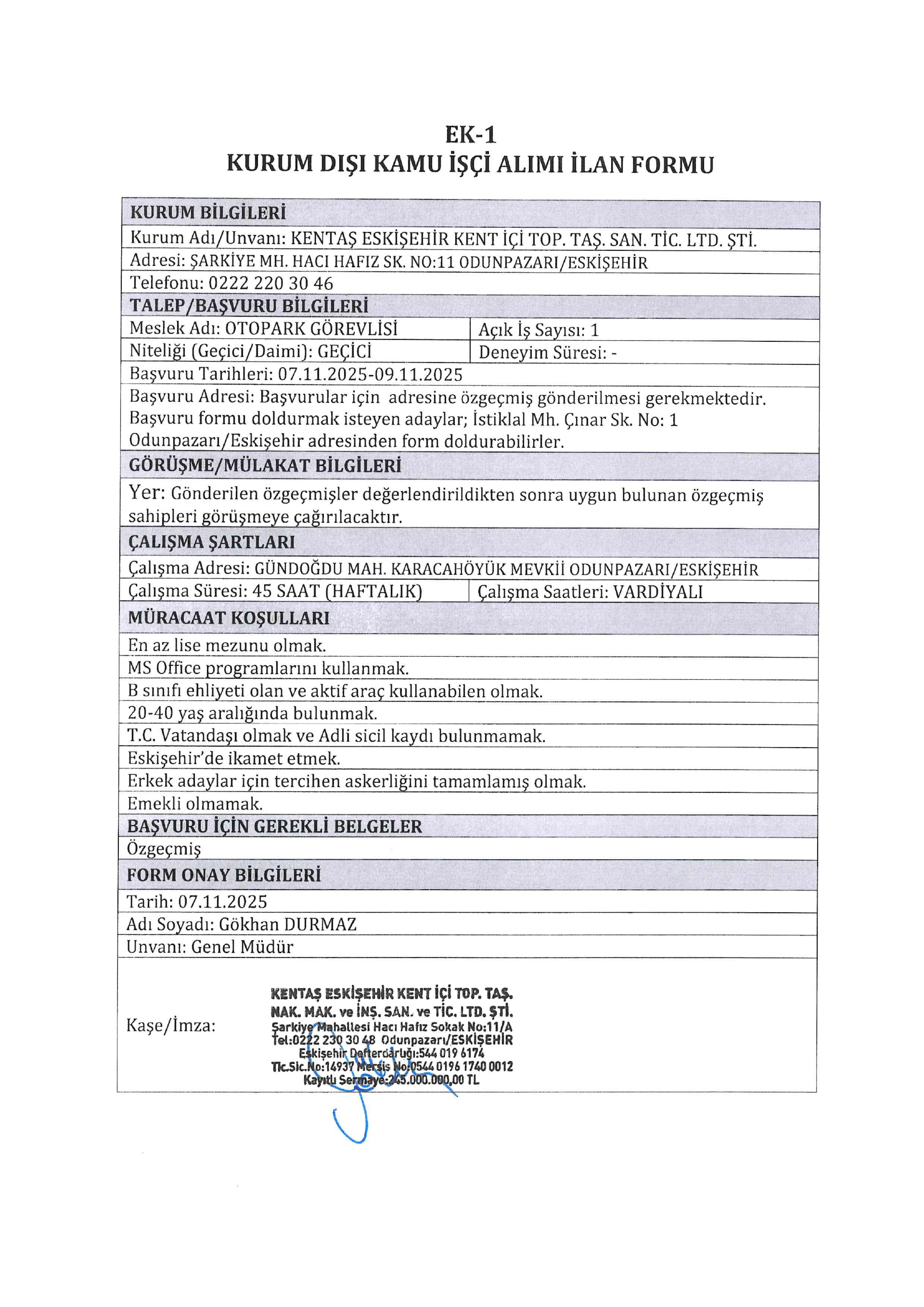Ana sayfaGeçici İşçi İlanları Eskişehir Kentaş Geçici 1 İşçi Alacak Eskişehir Kentaş Geçici 1 İşçi Alacak. Son başvuru tarihi 9 Kasım 2025 Kaynak : İşkur İlan Giriş : 07 Kasım 2025 23:37, Son Güncelleme : 07 Kasım 2025 23:43 Yazdır Yorumlar (0) Abone Ol