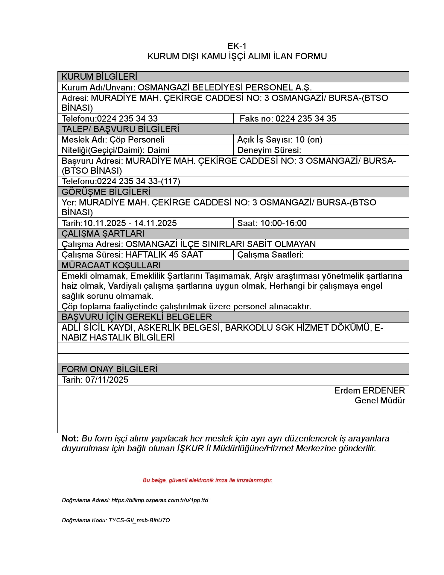 Ana sayfaDaimi İşçi İlanları Bursa Osmangazi Belediyesi 10 İşçi Alacak Bursa Osmangazi Belediyesi 10 İşçi Alacak. Son başvuru tarihi 14 Kasım 2025 Kaynak : İşkur İlan Giriş : 07 Kasım 2025 23:43, Son Güncelleme : 07 Kasım 2025 23:41 Yazdır Yorumlar (0) Abone Ol
