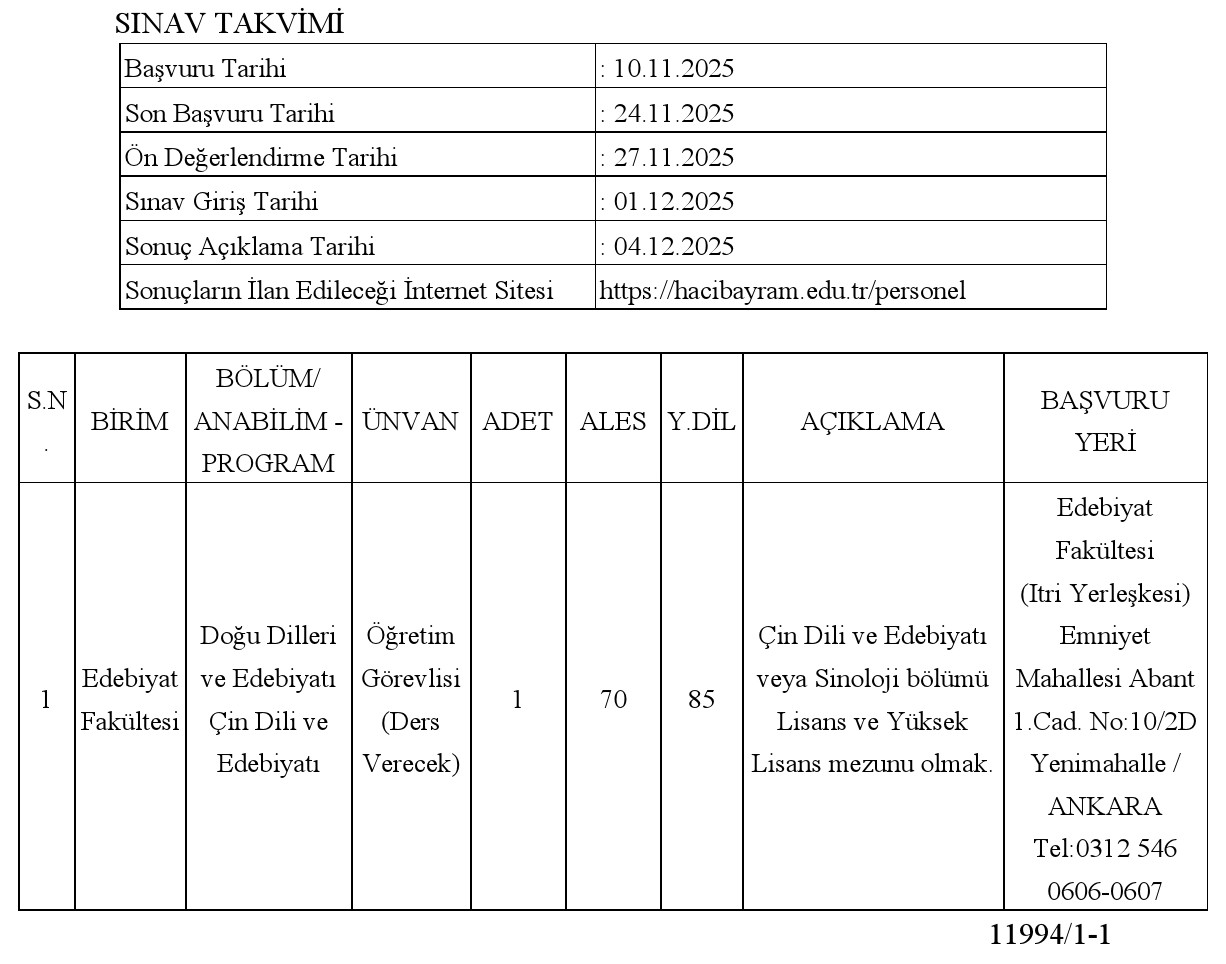 Ankara Hacı Bayram Veli Üniversitesi Öğretim Elemanı Alım İlanı. Son başvuru tarihi 24 Kasım 2025