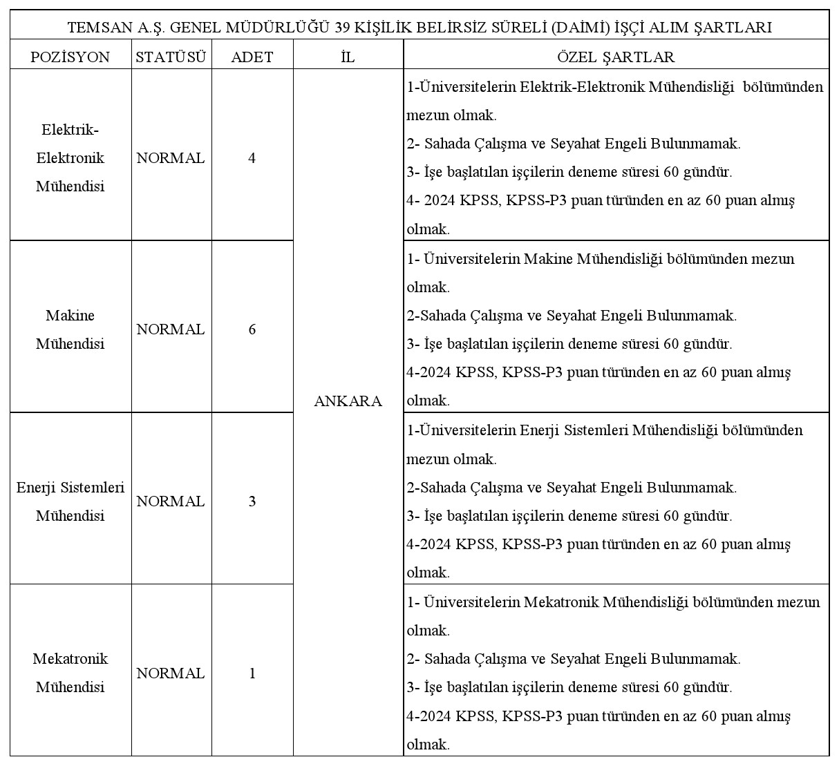 Türkiye Elektromekanik Sanayi A.Ş 39 Personel Alacak. Son başvuru tarihi 14 Kasım 2025