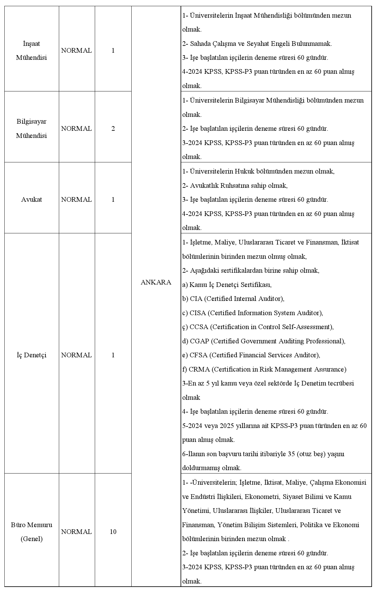 Personel alımı hakkındaki talebimiz Türkiye İş Kurumu (İŞKUR)' da Açık İş İlanlarında 10.11.2025 tarihinde ilan edilecek olup, 5 (Beş) gün süre ile ilanda kalacaktır.