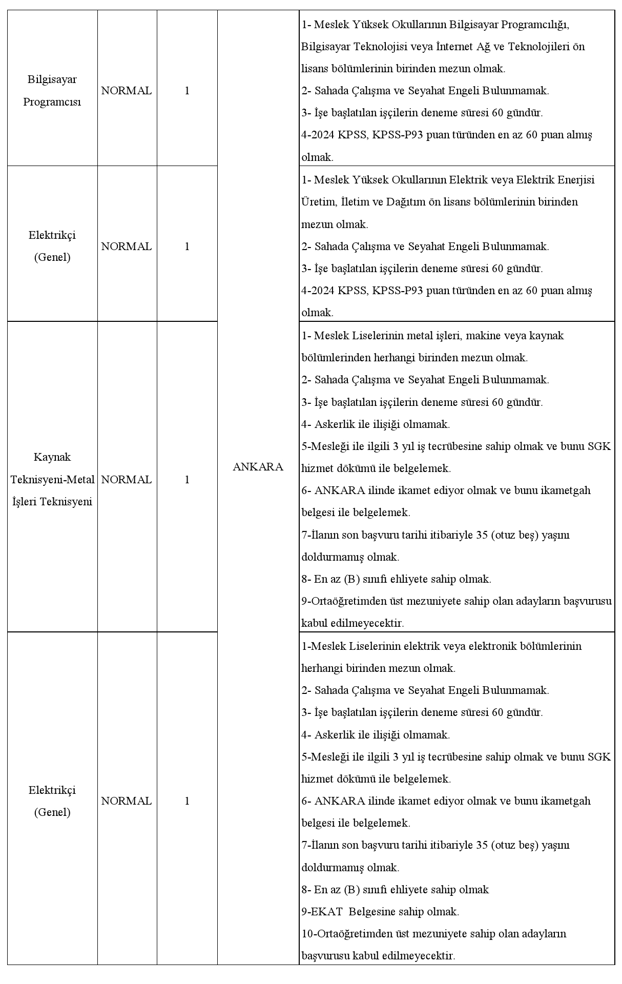 Kuruluşumuzca belirsiz süreli (daimi) iş sözleşmesi ile çalıştırılmak üzere;