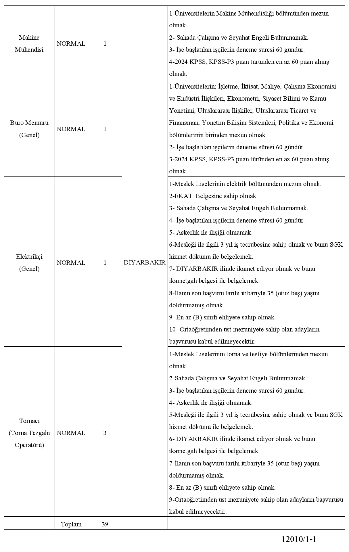 olmak üzere toplam 39 (Otuzdokuz) daimi işçi alımı yapılacaktır.