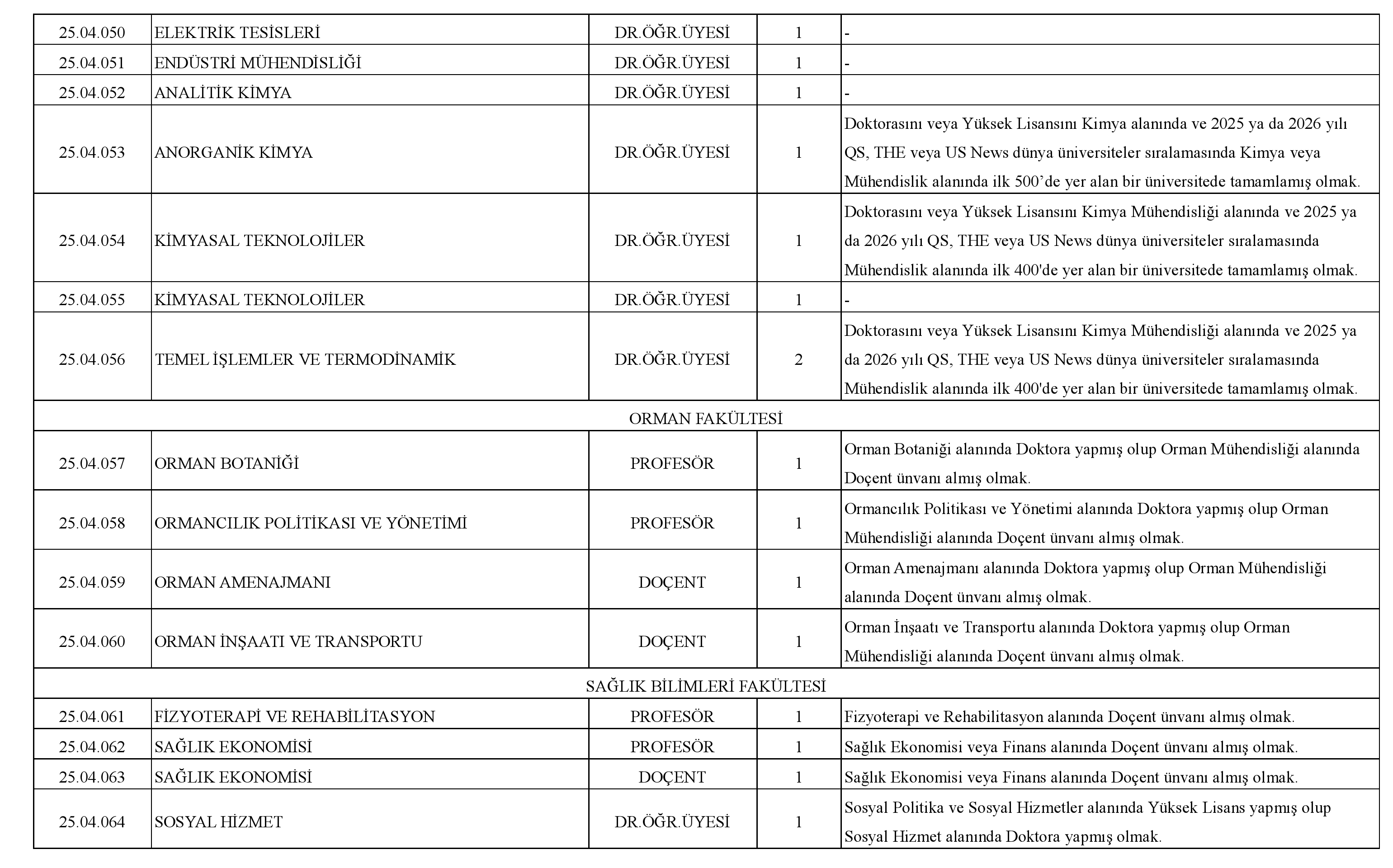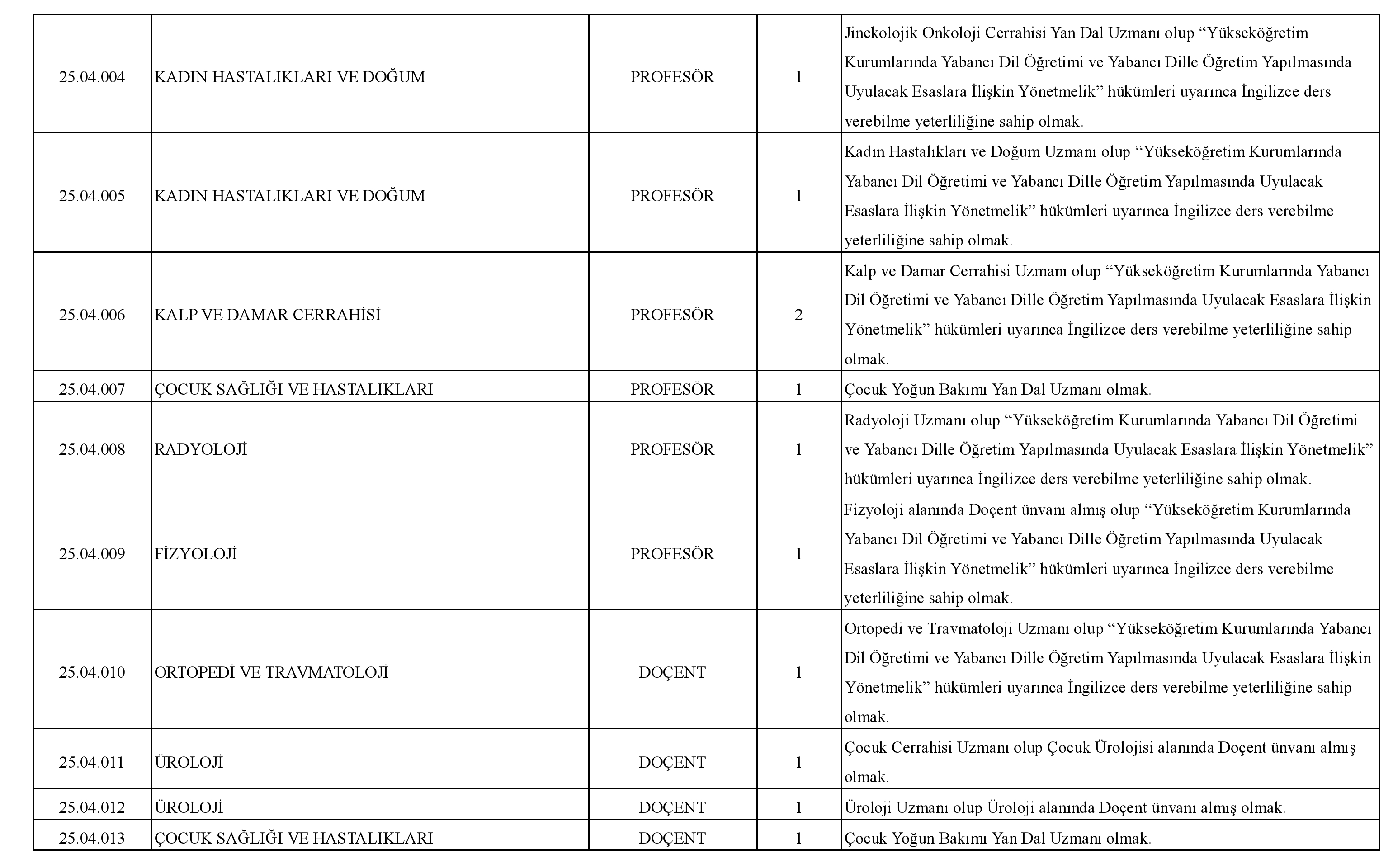1) Doçent ve Doktor Öğretim Üyesi kadrolarına daha önce Profesör ünvanı almış adaylar başvuramaz.