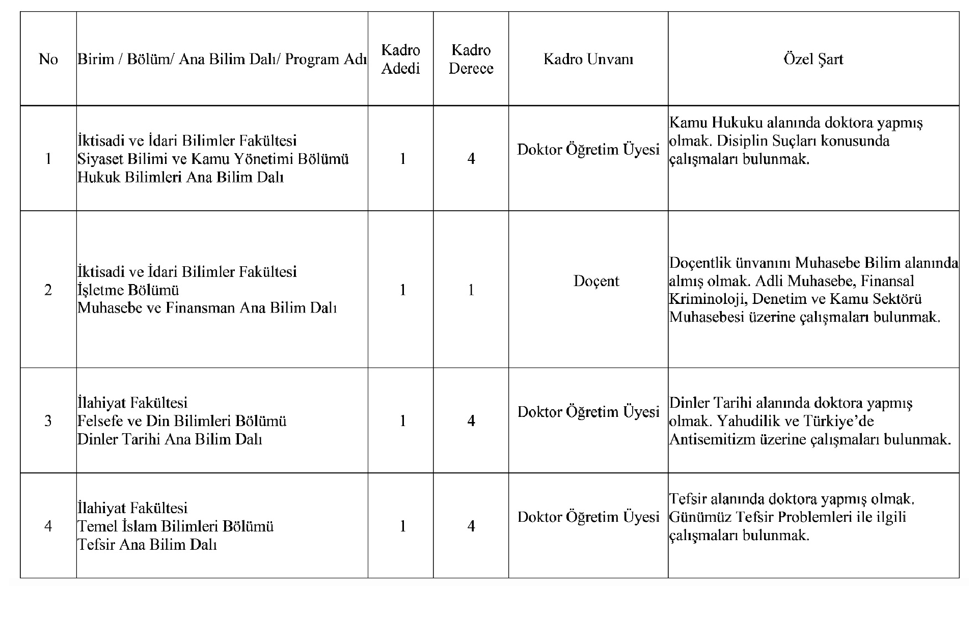 ÖĞRETİM ÜYESİ ALIM İLANI