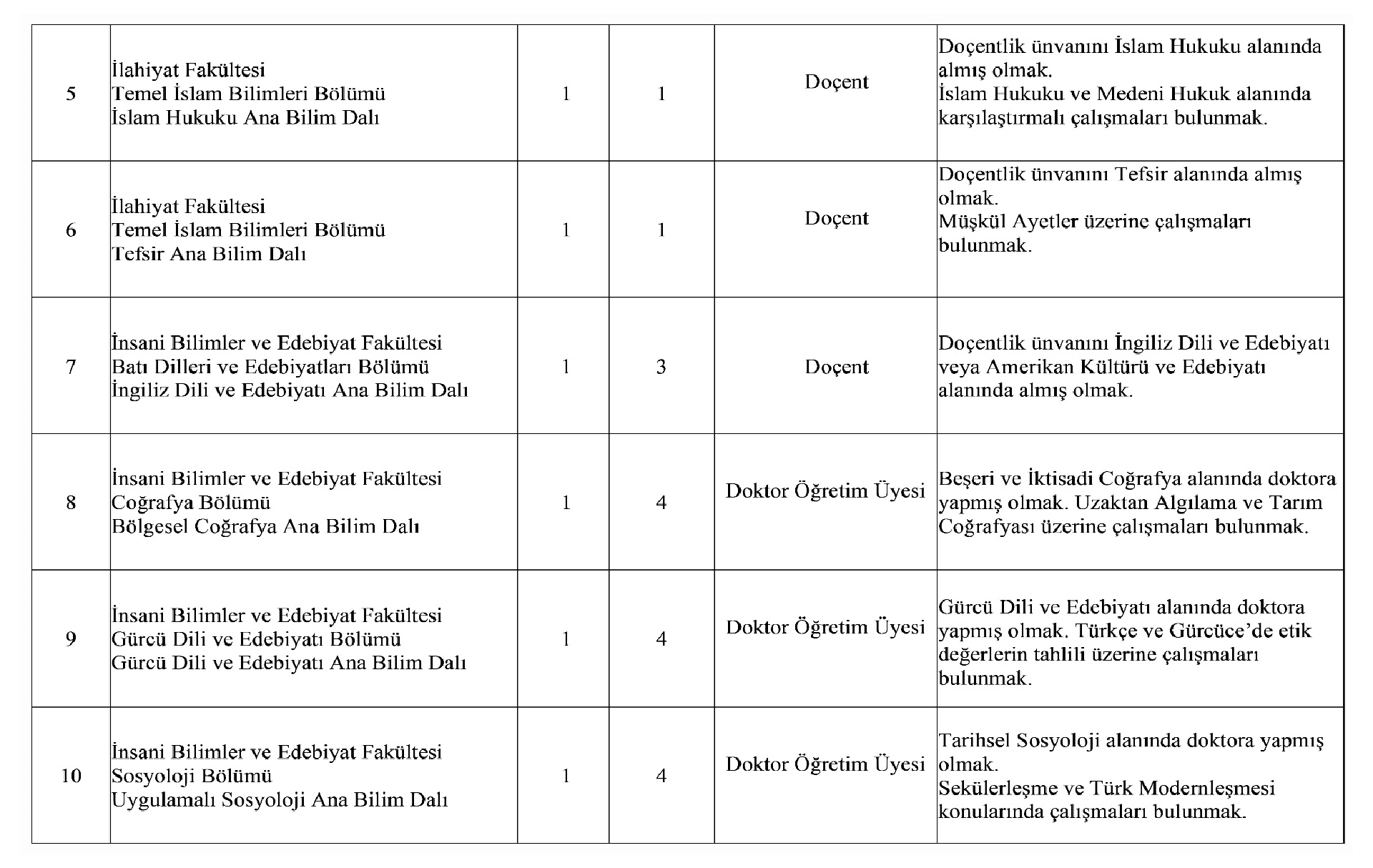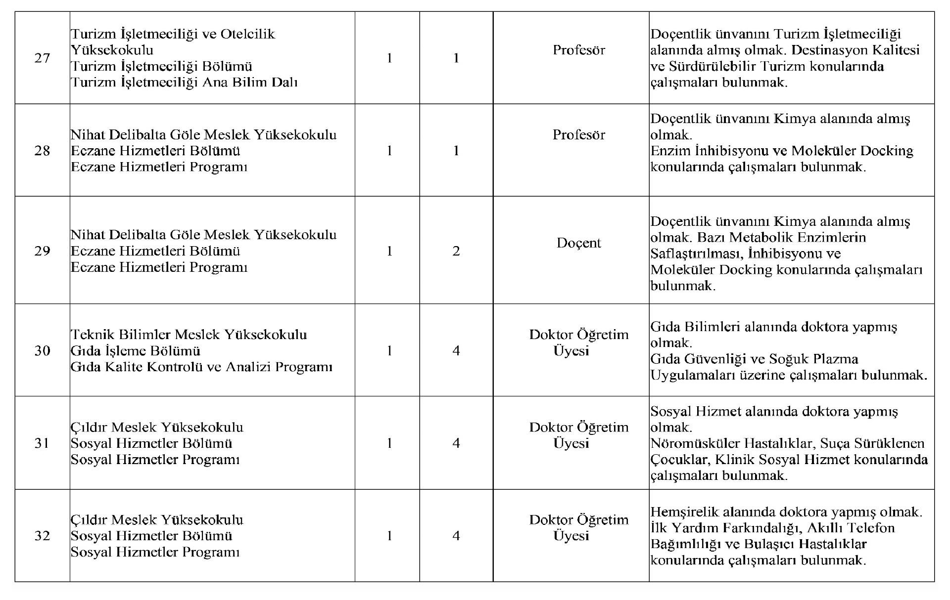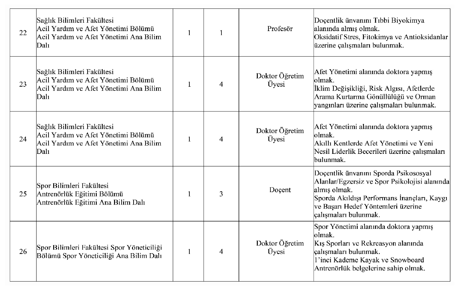 İlan edilen kadrolara başvuru yapmak isteyen adayların ilanda belirtilen unvandan üst bir ünvana hak kazanmamış olması şarttır.