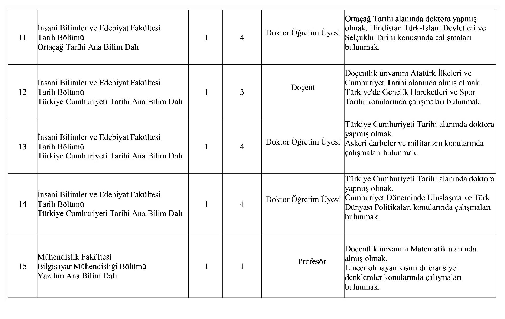 3- Yüksek Lisans ve Doktora yapıyor veya yapmış olmak şartı yer alan ilanlarda, ilanda belirtilen anabilim dahnın/bilim dalının/alanın mezuniyet belgesinde/öğrenci belgesinde/ transkriptte veya onaylı resmi yazıda belirtilmiş olması gerekmektedir.