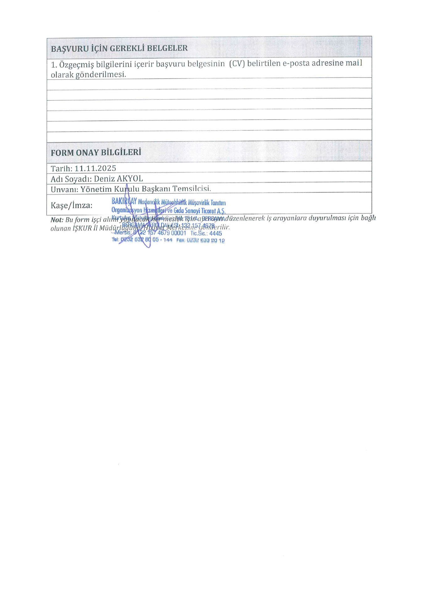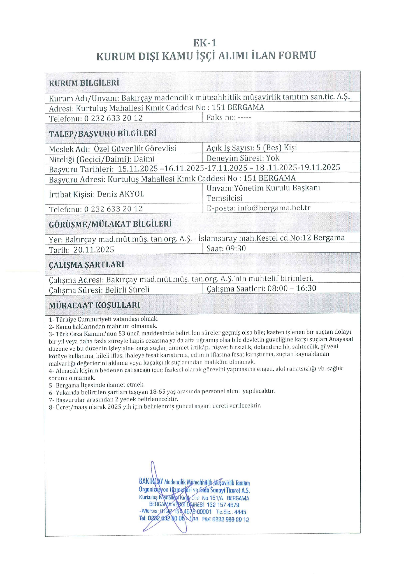 Ana sayfaDaimi İşçi İlanları İzmir Bakırçay Madencilik 5 İşçi Alacak İzmir Bakırçay Madencilik 5 İşçi Alacak. Son başvuru tarihi 19 Kasım 2025 Kaynak : İşkur İlan Giriş : 12 Kasım 2025 23:18, Son Güncelleme : 12 Kasım 2025 23:59 Yazdır Yorumlar (0) Abone Ol
