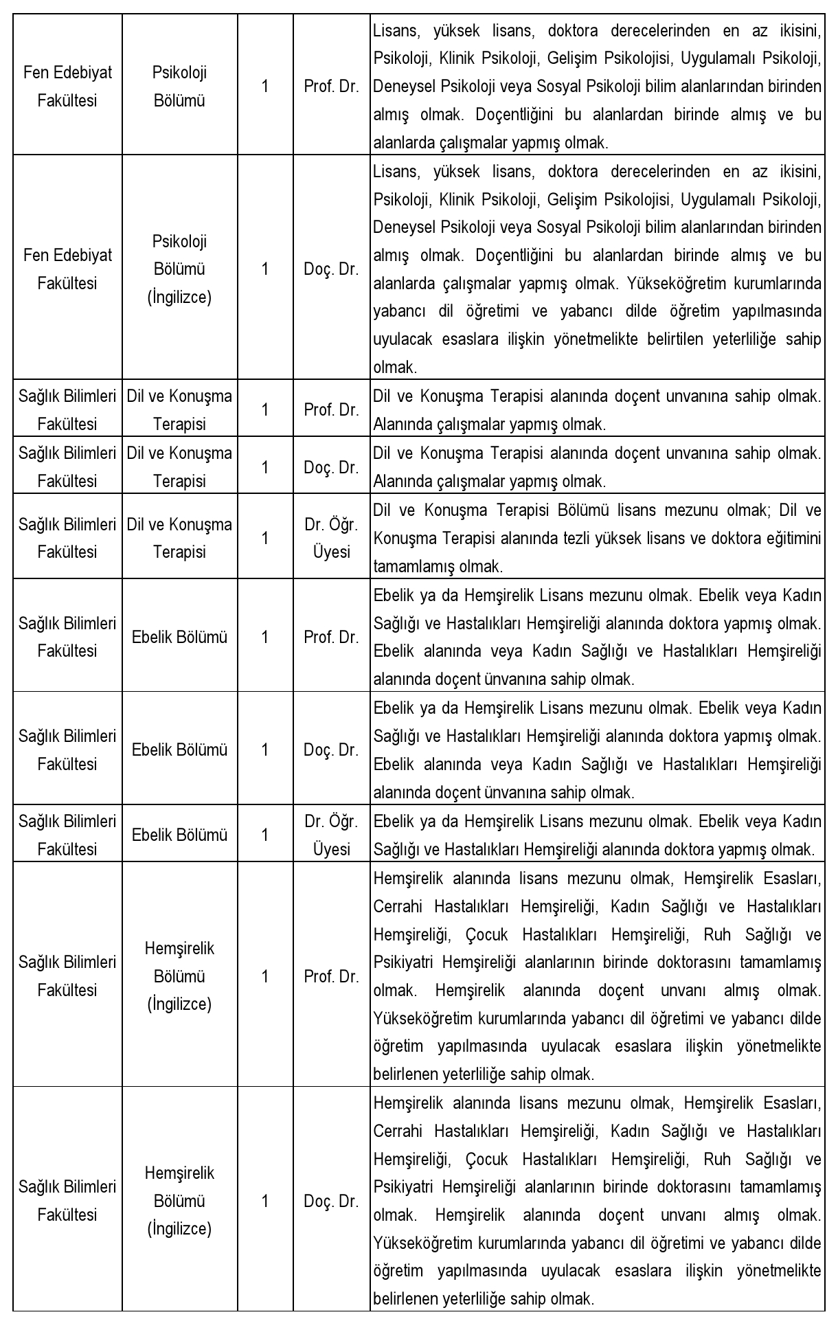 Üniversitemizin aşağıda belirtilen akademik birimlerine 2547 sayılı Yükseköğretim Kanunu ve Öğretim Üyeliğine Yükseltilme ve Atanma Yönetmeliği'nin ilgili maddeleri uyarınca, Üniversitemizin Akademik Birimlerine tam zamanlı öğretim üyeleri alınacaktır.